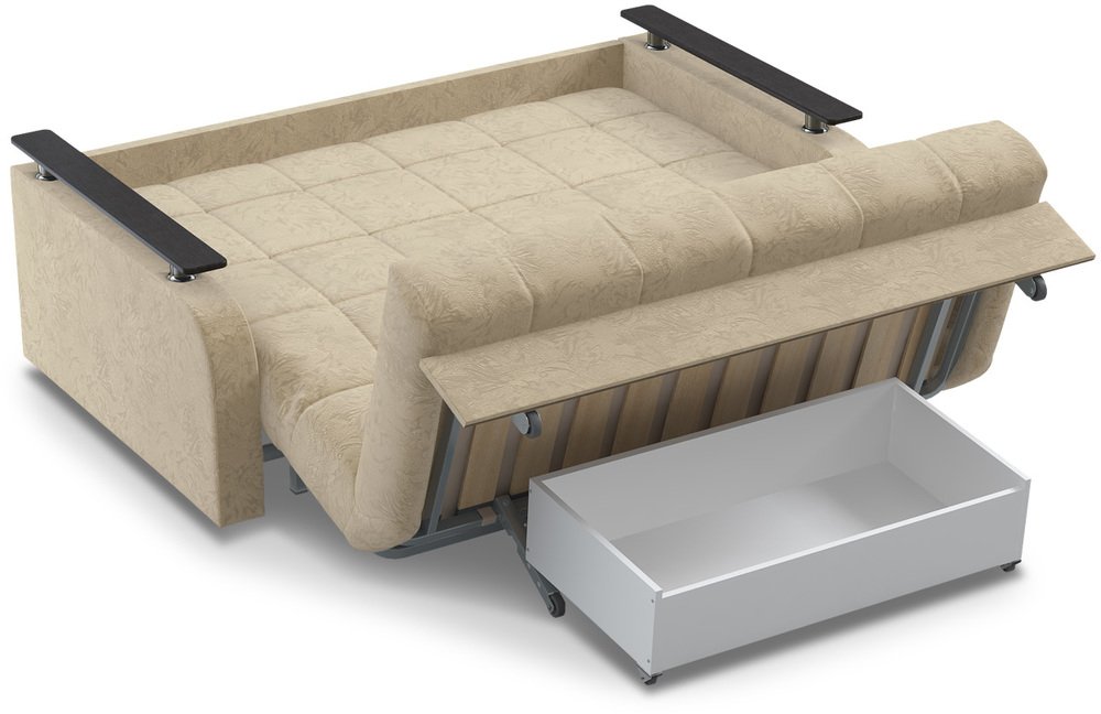 - При минимальных габаритах диван обладает отличным спальным местом.