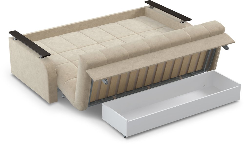 - При минимальных габаритах диван обладает отличным спальным местом.