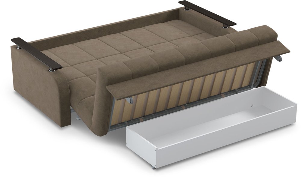 - При минимальных габаритах диван обладает отличным спальным местом.