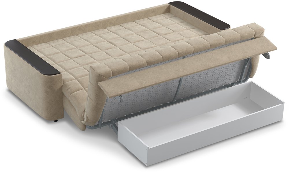 - При минимальных габаритах диван обладает отличным спальным местом.
