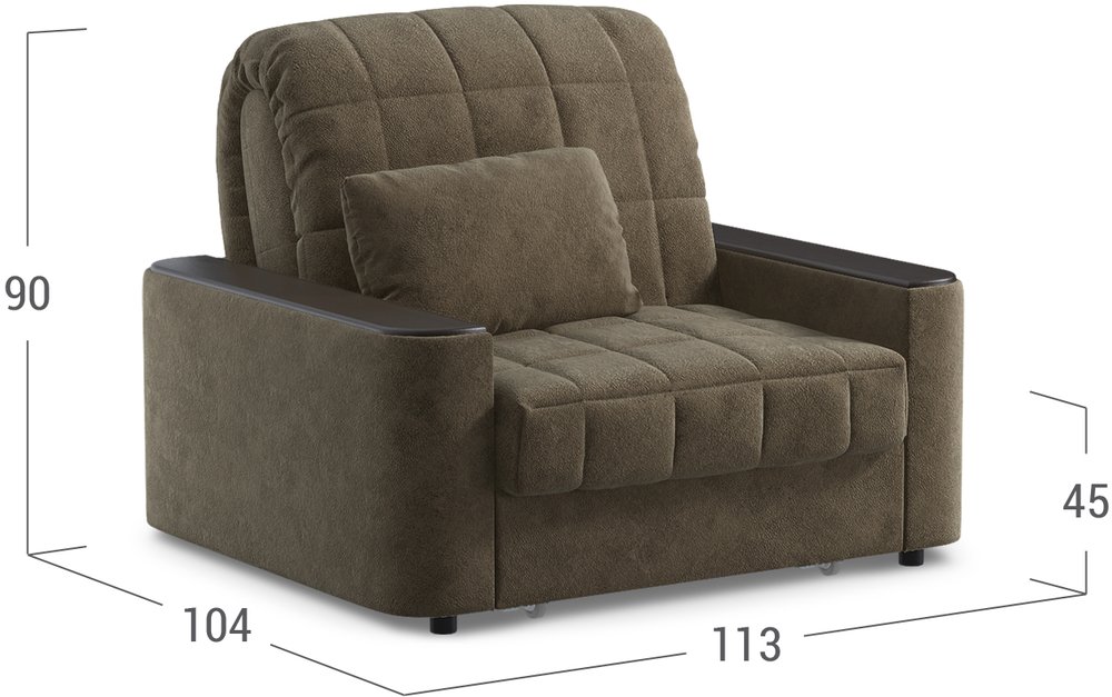 Кресло-кровать аккордеон, спальное место 80х200 смКресло-кровать MOON FAMILY 018 украшено стежкой в квадрат. Проверенный временем дизайн производит впечатление уютного и надежного пространства. На объемные прямоугольные подлокотники с широкой столешницей удобно положить книгу и пульт, телефон или планшет, а также поставить чашечку чая.