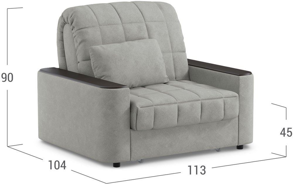 Объемные подлокотники — стильная деталь, отлично вписывающая кресло-кровать в интерьер современной городской квартиры.