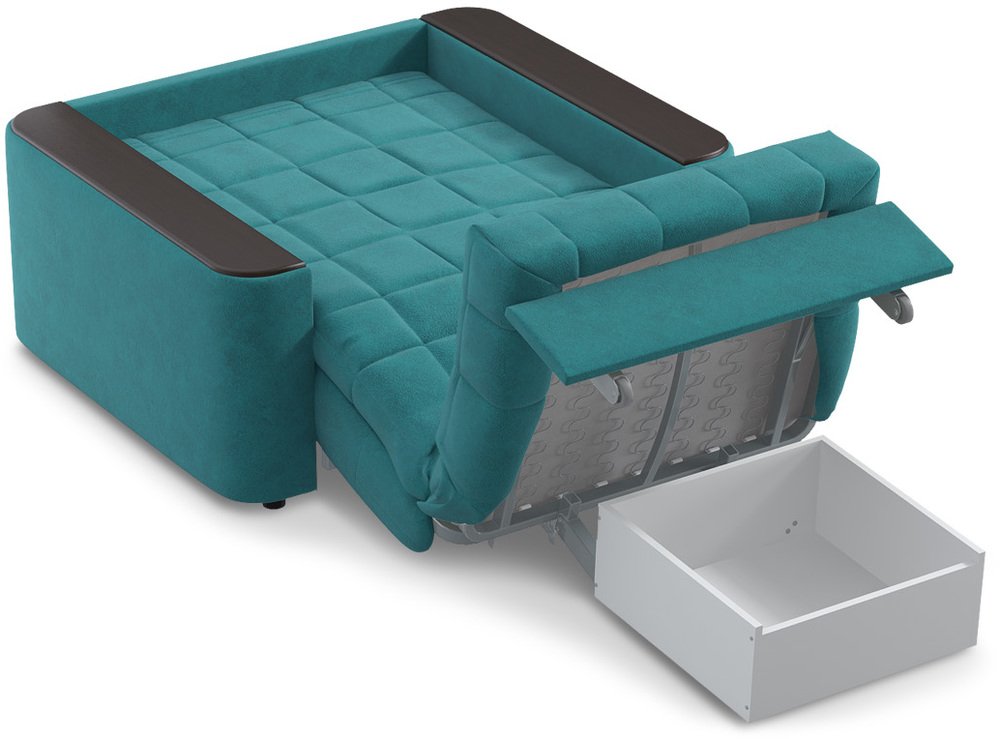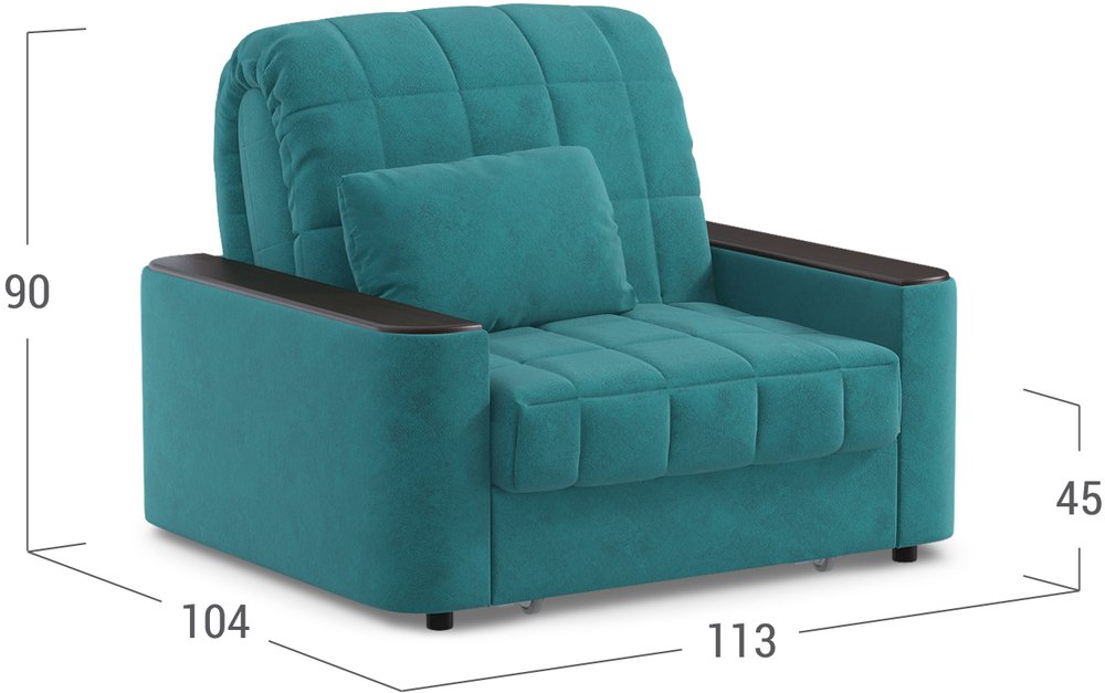 Объемные подлокотники — стильная деталь, отлично вписывающая кресло-кровать в интерьер современной городской квартиры.