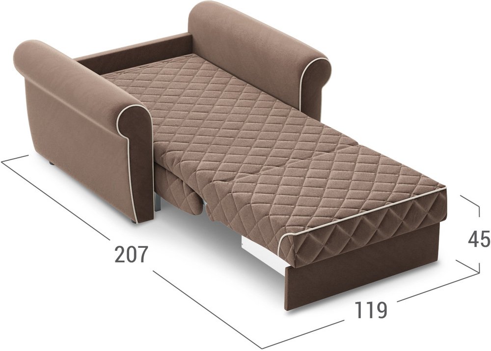 • При минимальных габаритах кресло обладает отличным спальным местом.