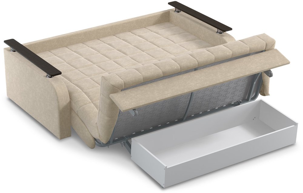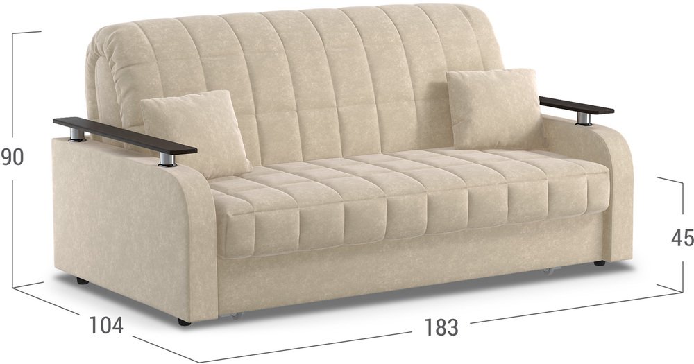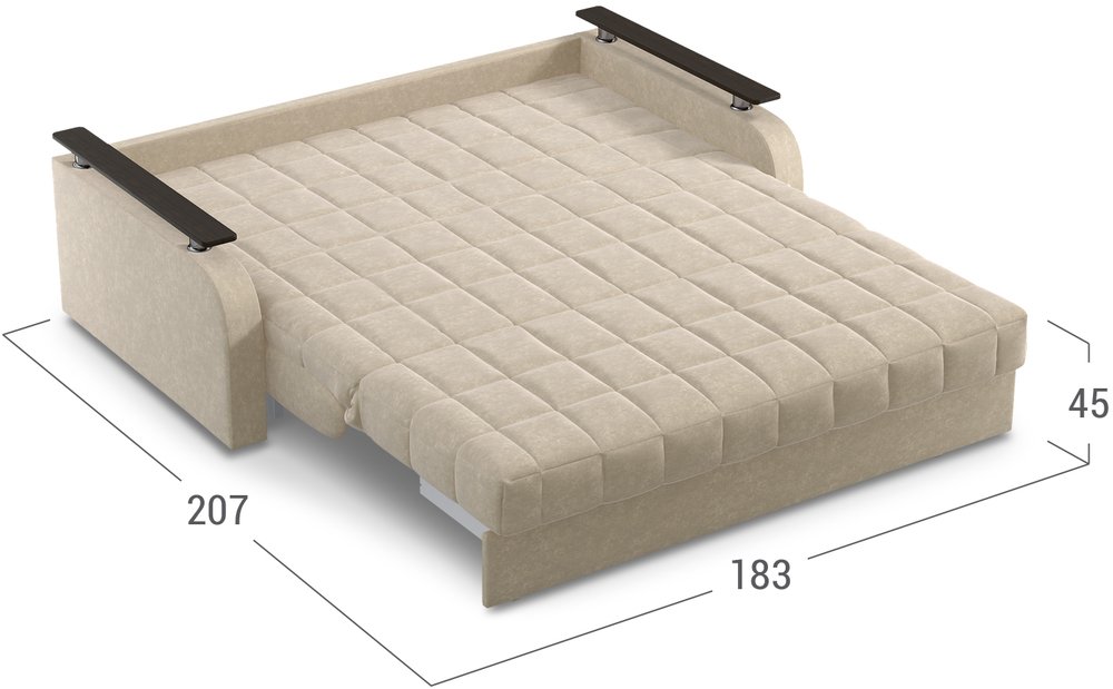 - При минимальных габаритах диван обладает отличным спальным местом.