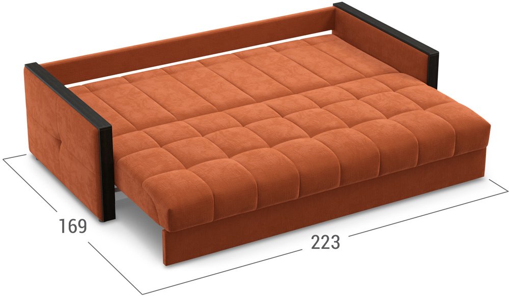 Диван очень понравился. Покупался в основном для ежедневного спального места для одного человека без расскладывания. Без подушек для спины спальное место ~82см, что вполне достаточно для комфортного сна. Сначала рассматривался к покупке "Барселона NEXT" но по счастливой случайности договор купли-продажи с цветом-мебели пришлось расторгнут поскольку так и не смогли привезти на 70% оплаченный товар в течении ДВУХ месяцев. В результате выбрал Мадрид 125 за 49т.р.(цена на 27.06.2021) и очень покупке. Однозначно рекомендую к приобретению.