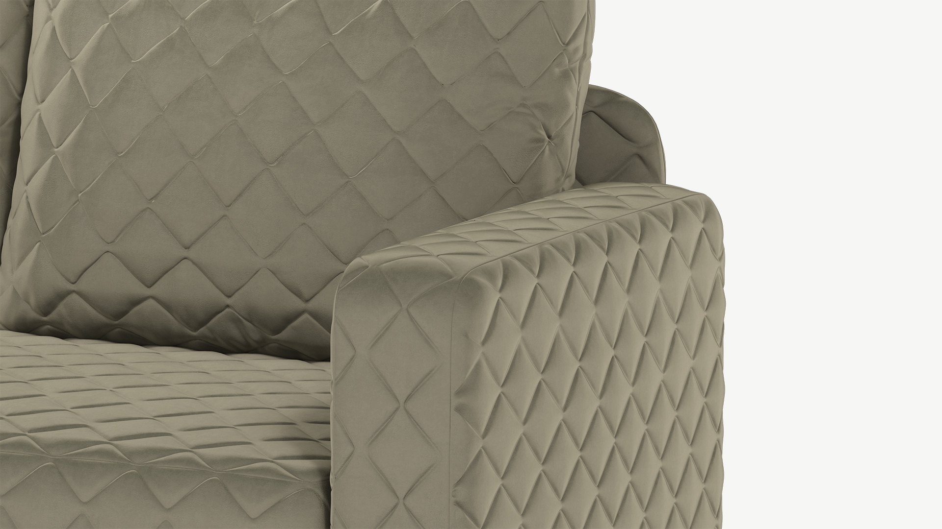 ДиванMOON FAMILY 087, облаченный в стеганую ткань с ромбовидным узором, очаровывает с первого взгляда. Этот диван станет не просто предметом мебели, а настоящим акцентом интерьера. Его лаконичная форма, обыгранная объемными приспинными подушками, добавляет окружающему пространству атмосферы тепла и уюта. Ромбовидный узор создает интересную текстурную игру, наделяя образ MOON FAMILY 087 уникальным звучанием.