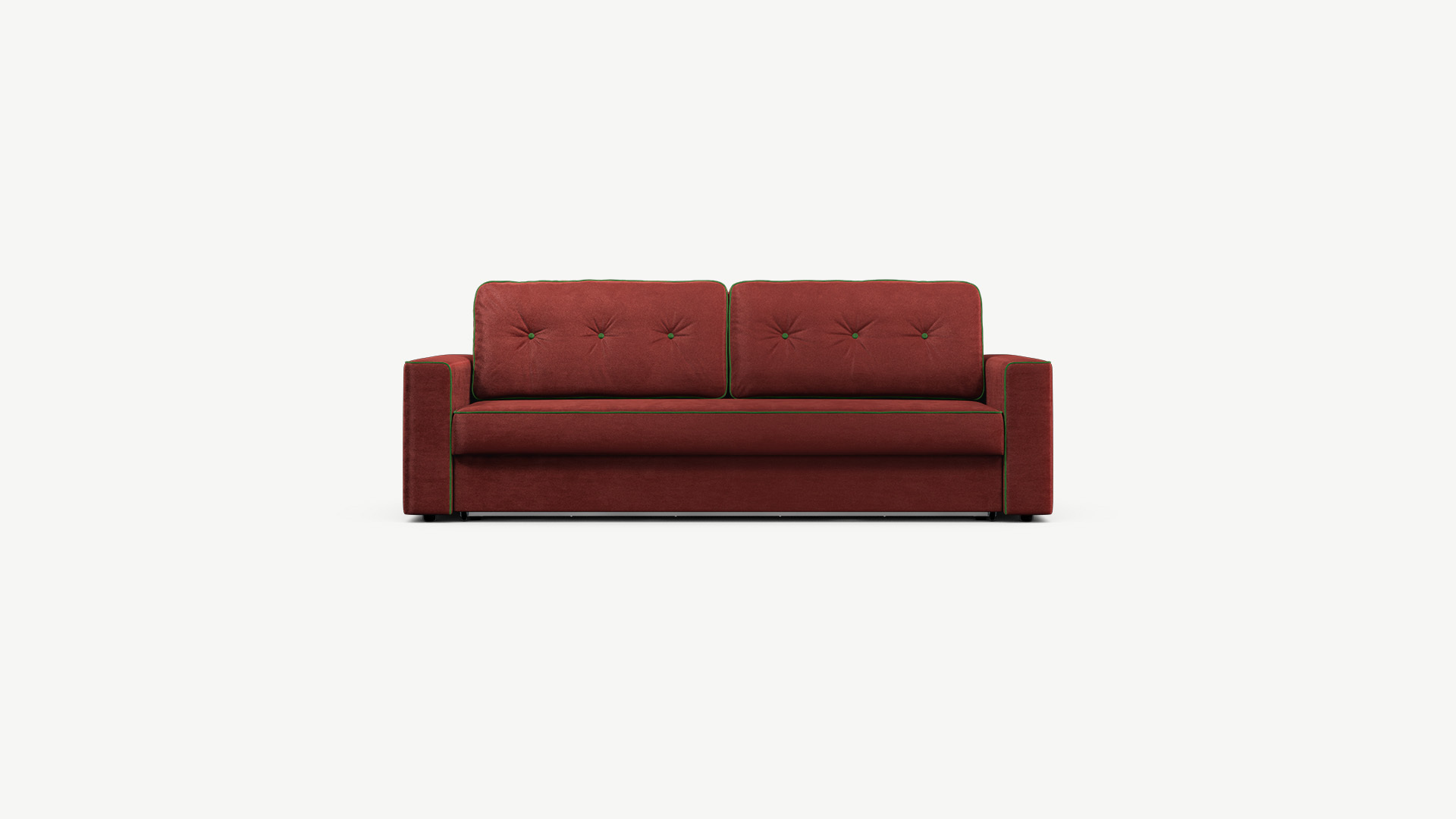 Пользуюсь диваном уже год довольна цветом у меня морская волна и бежевый кант. Это не лёгкий, а массивный вариант в интерьере. Контрастный приятный цвет насыщенный и не слишком яркий. Сейчас используем как ежедневное спальное место для тех кто любит не слишком мягко. Подушки довольно большие, больше нравится лежать, для сидения предпочитаю подушки поменьше. Довольна сервисом при покупке понравился продавец отработала на все 100% ТЦ Арена г. Воронеж. Доставили без проблем. Первое время неделю-две был химический запах от внутреннего наполнения дивана, меня об этом предупредили, потом выветрился и все нормально. Рекомендую!