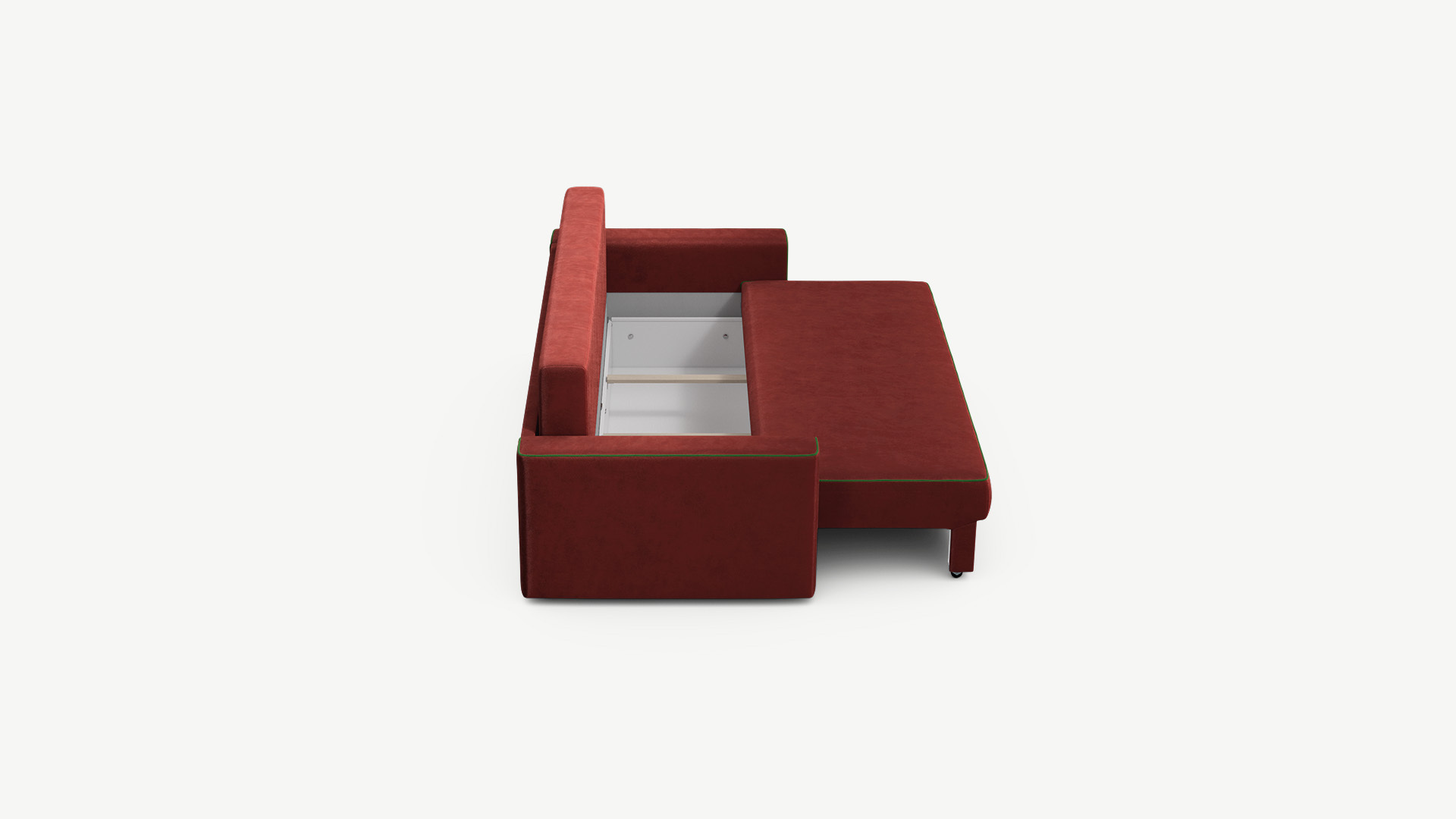 Достоинства: Красивый цвет, удобное спальное место, есть короб для хранения