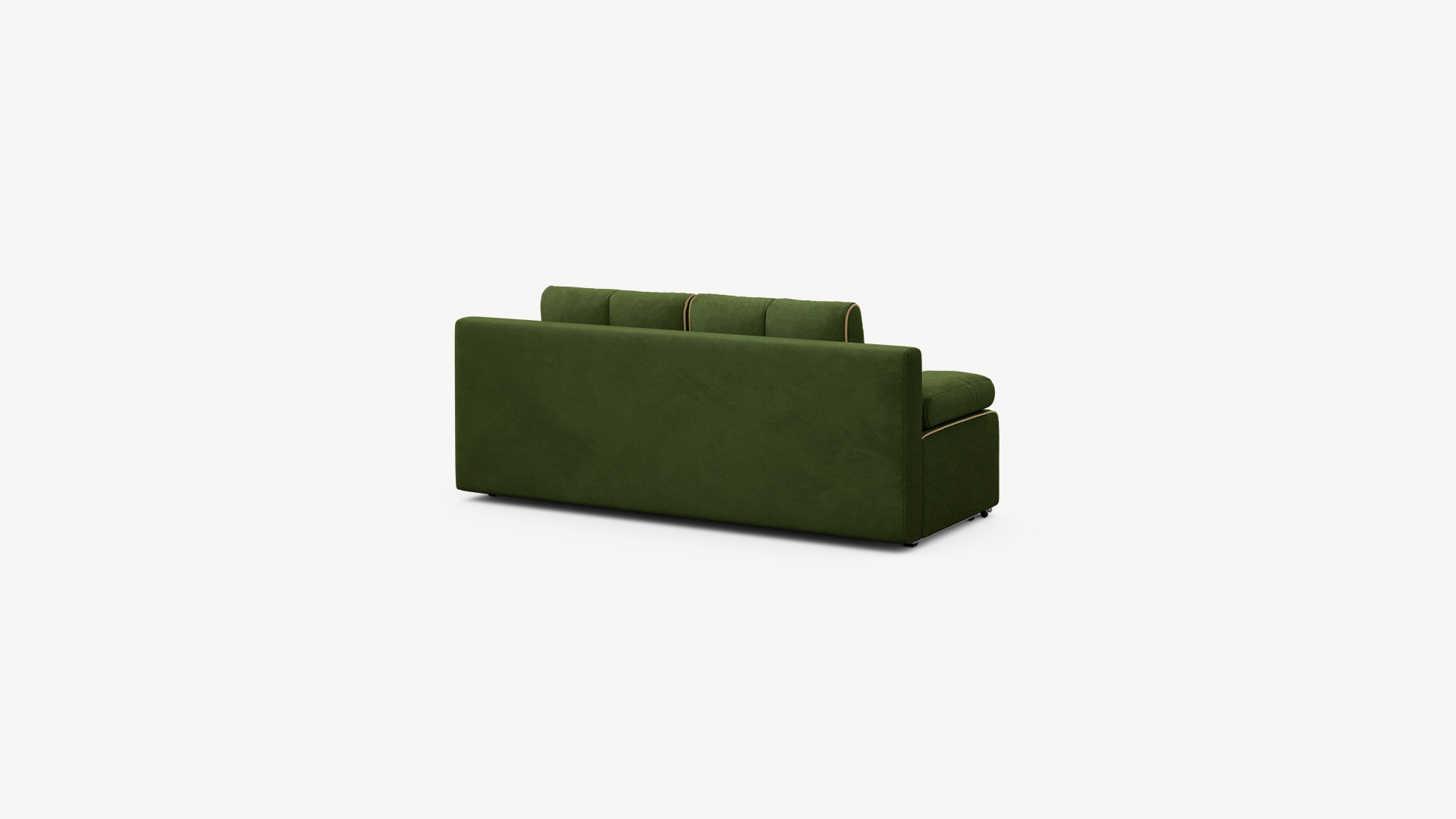 Контрастный кант, украшающий «срезы» на корпусе и приспинных подушках MOON FAMILY 043, лишь усиливает визуальную идентичность элементов, поддерживая эффект наборности.