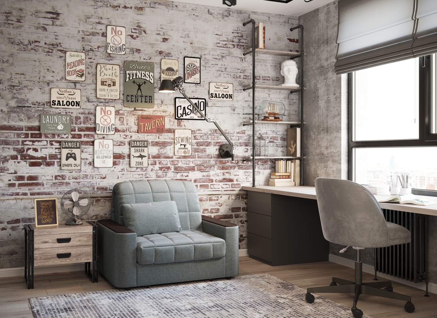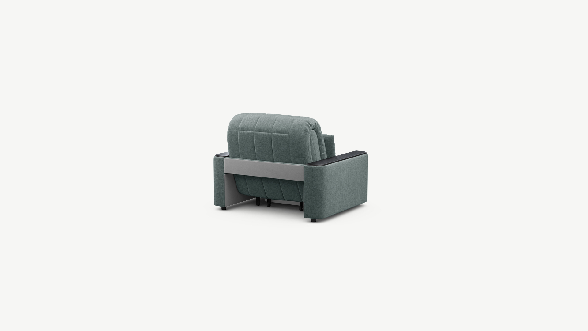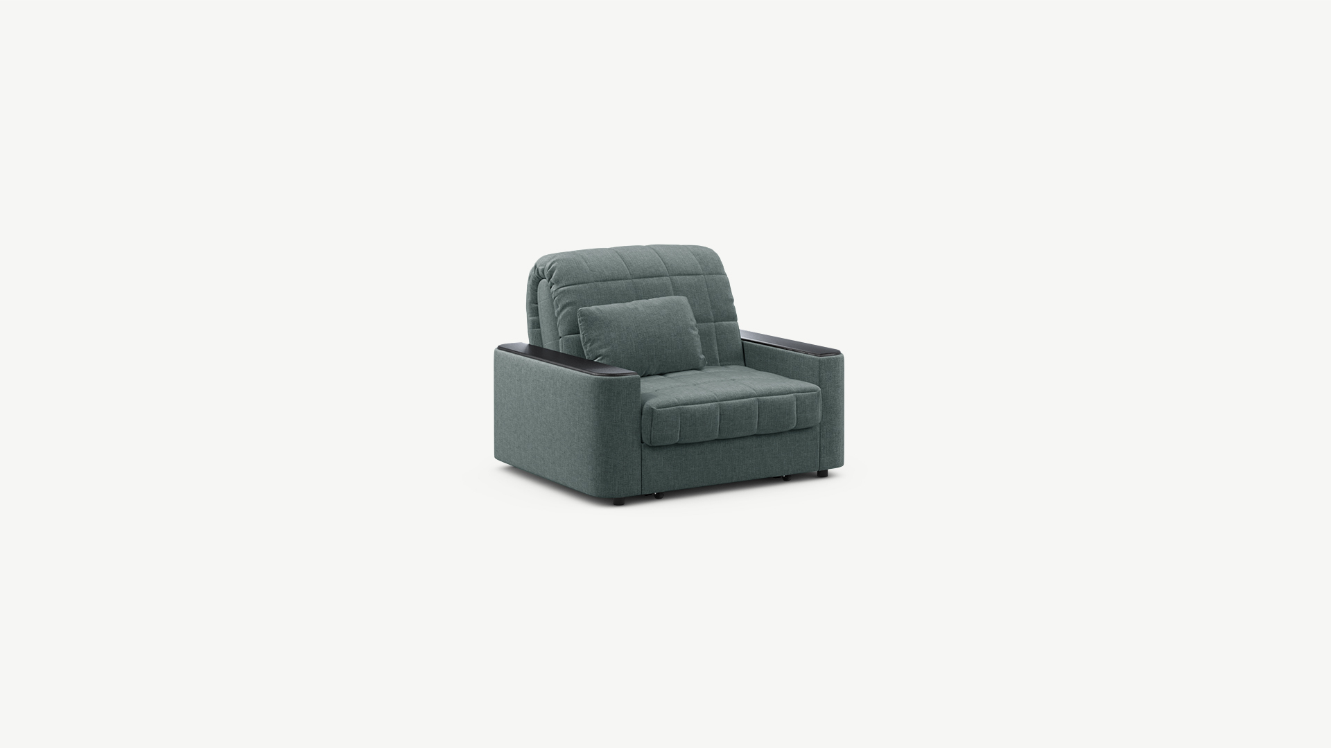 Объемные подлокотники — стильная деталь, отлично вписывающая кресло-кровать в интерьер современной городской квартиры.