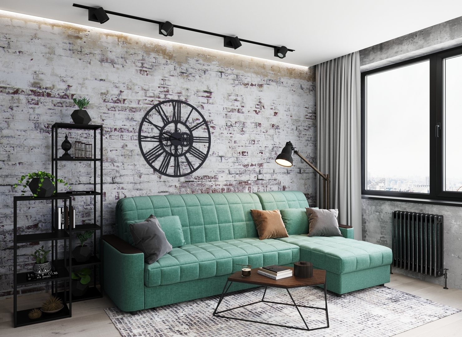 Объемные подлокотники — стильная деталь, отлично вписывающая диван в интерьер современной городской квартиры.