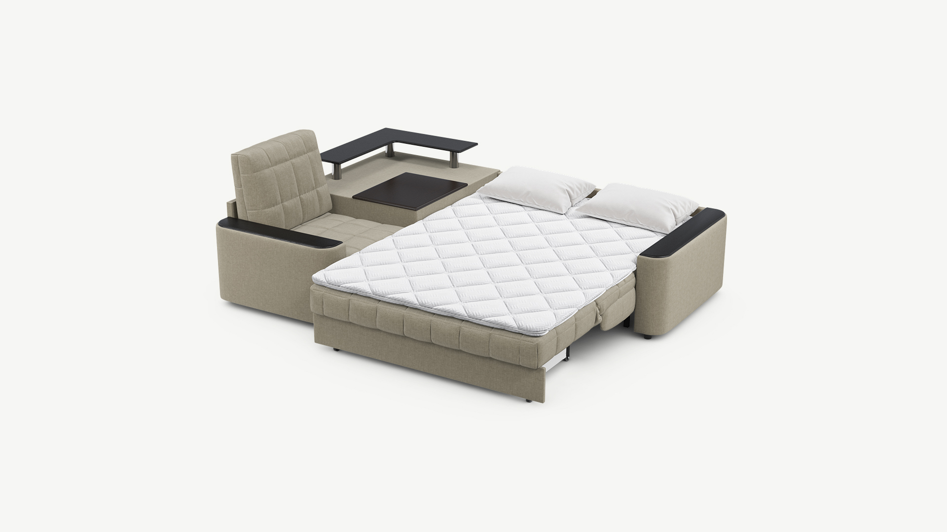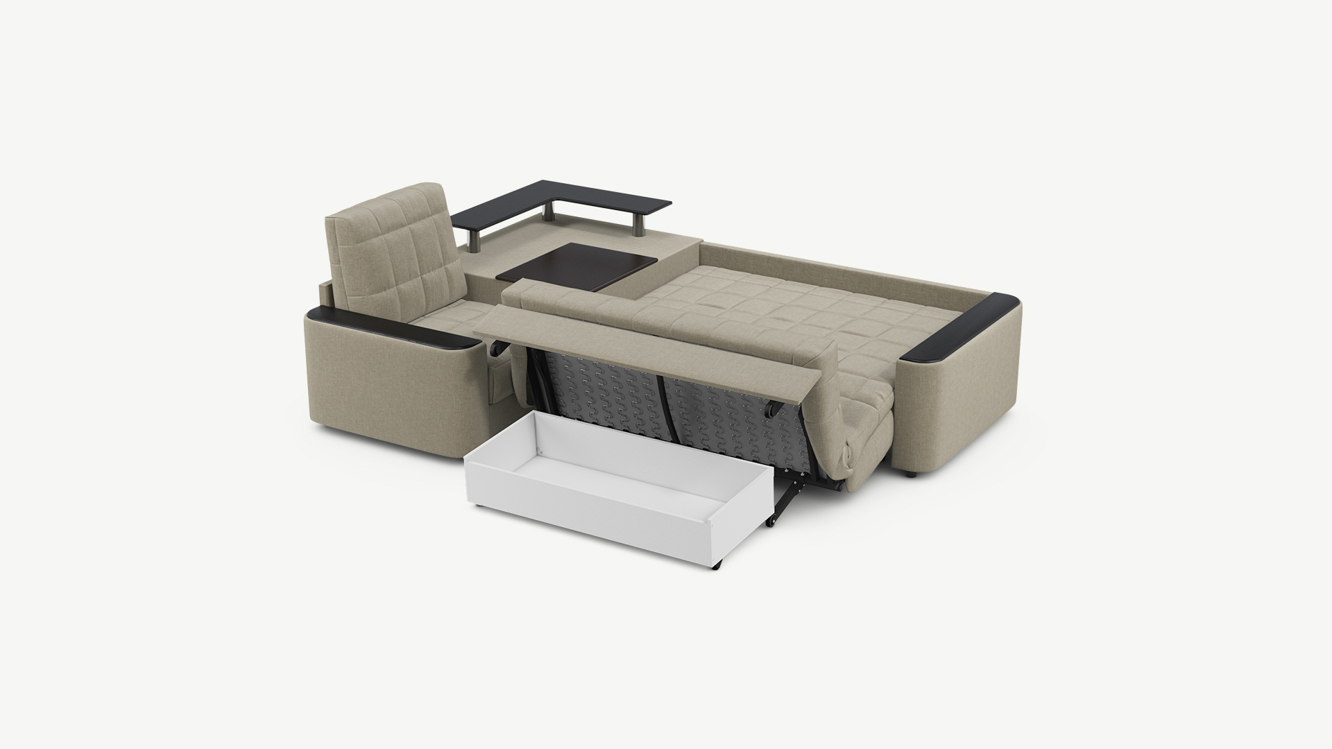 Выбирая угловой диван со столиком, Вы сможете проводить время с максимальным комфортом, многократно повысив функциональность дивана. Все дело в том, что под столешницей модуля расположена вместительная емкость для хранения. Кроме того, поверхность столика — идеальное пространство для чаепития в приятной компании, а также место для множества актуальных мелочей — от ноутбука до косметики.
