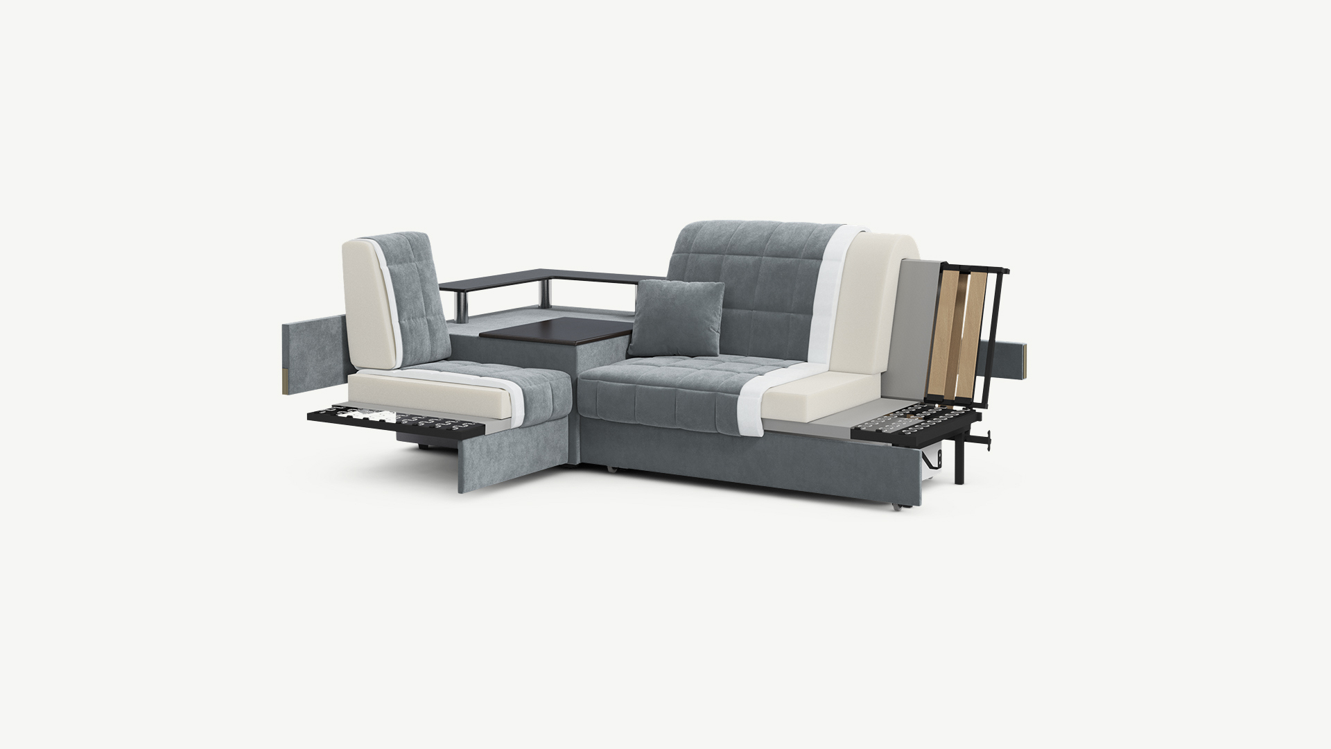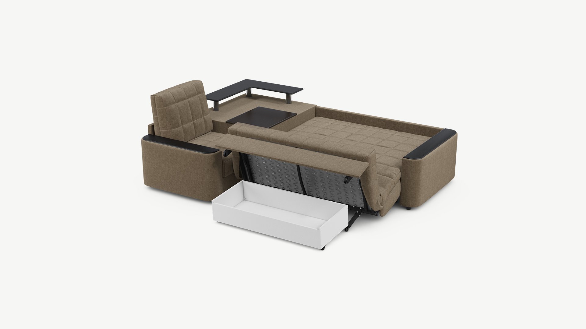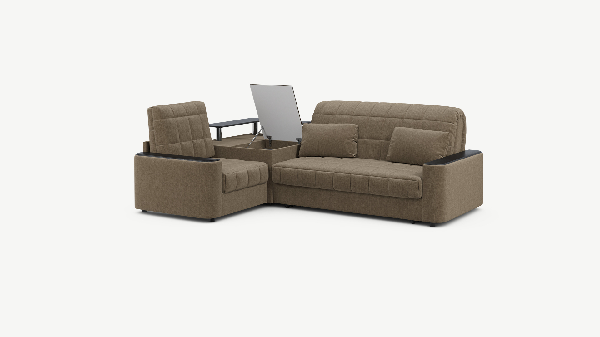 Выбирая угловой диван со столиком, Вы сможете проводить время с максимальным комфортом, многократно повысив функциональность дивана. Все дело в том, что под столешницей модуля расположена вместительная емкость для хранения. Кроме того, поверхность столика — идеальное пространство для чаепития в приятной компании, а также место для множества актуальных мелочей — от ноутбука до косметики.