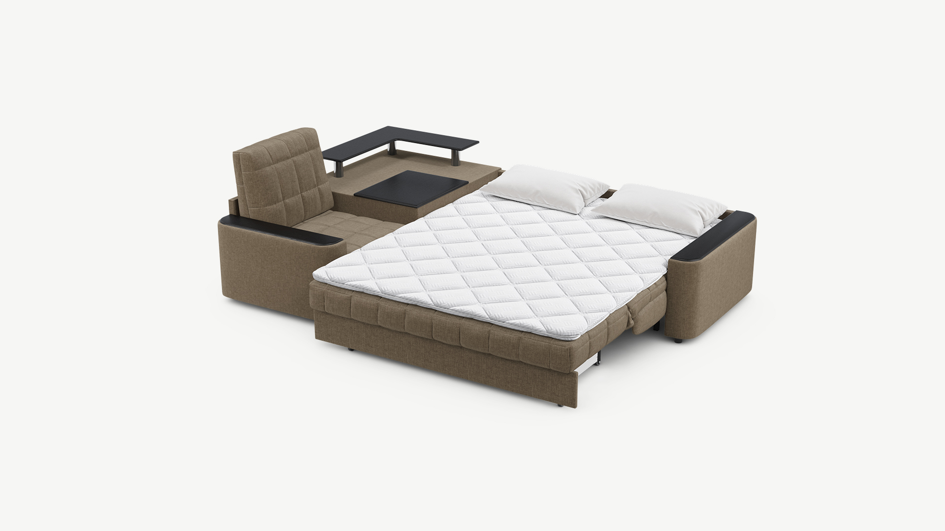 Выбирая угловой диван со столиком, Вы сможете проводить время с максимальным комфортом, многократно повысив функциональность дивана. Все дело в том, что под столешницей модуля расположена вместительная емкость для хранения. Кроме того, поверхность столика — идеальное пространство для чаепития в приятной компании, а также место для множества актуальных мелочей — от ноутбука до косметики.