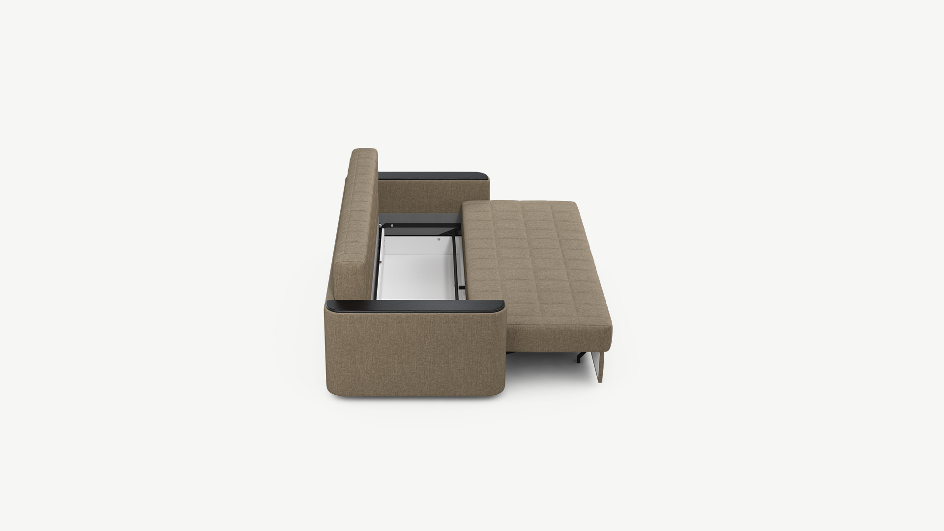 Механизм трансформации «Пантограф» подходит для ежедневного использования. Позволяет легко раскладывать и складывать диван, обеспечивая минимальный контакт дополнительных опор с напольным покрытием.