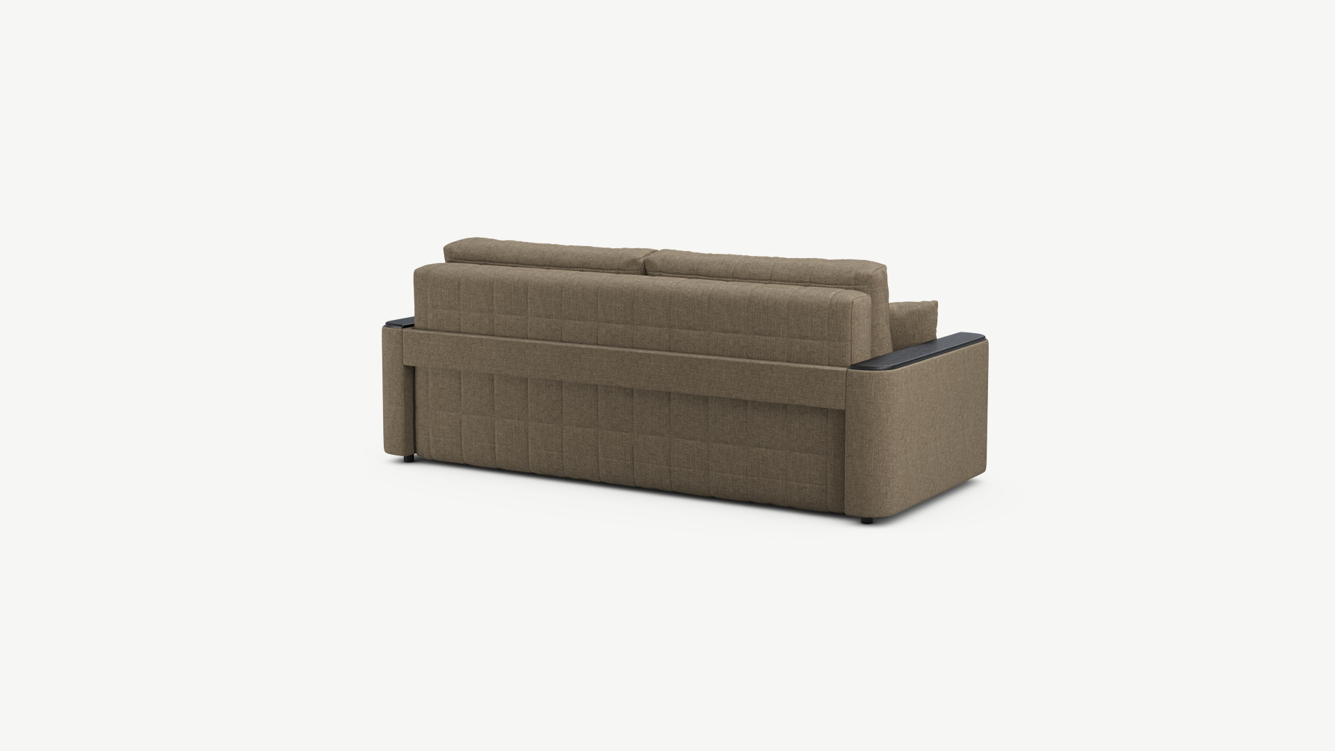Диван MOON FAMILY 018 украшен стежкой в квадрат. Проверенный временем дизайн производит впечатление уютного и надежного пространства. На объемные прямоугольные подлокотники с широкой столешницей удобно положить книгу и пульт, телефон или планшет, а также поставить чашечку чая.