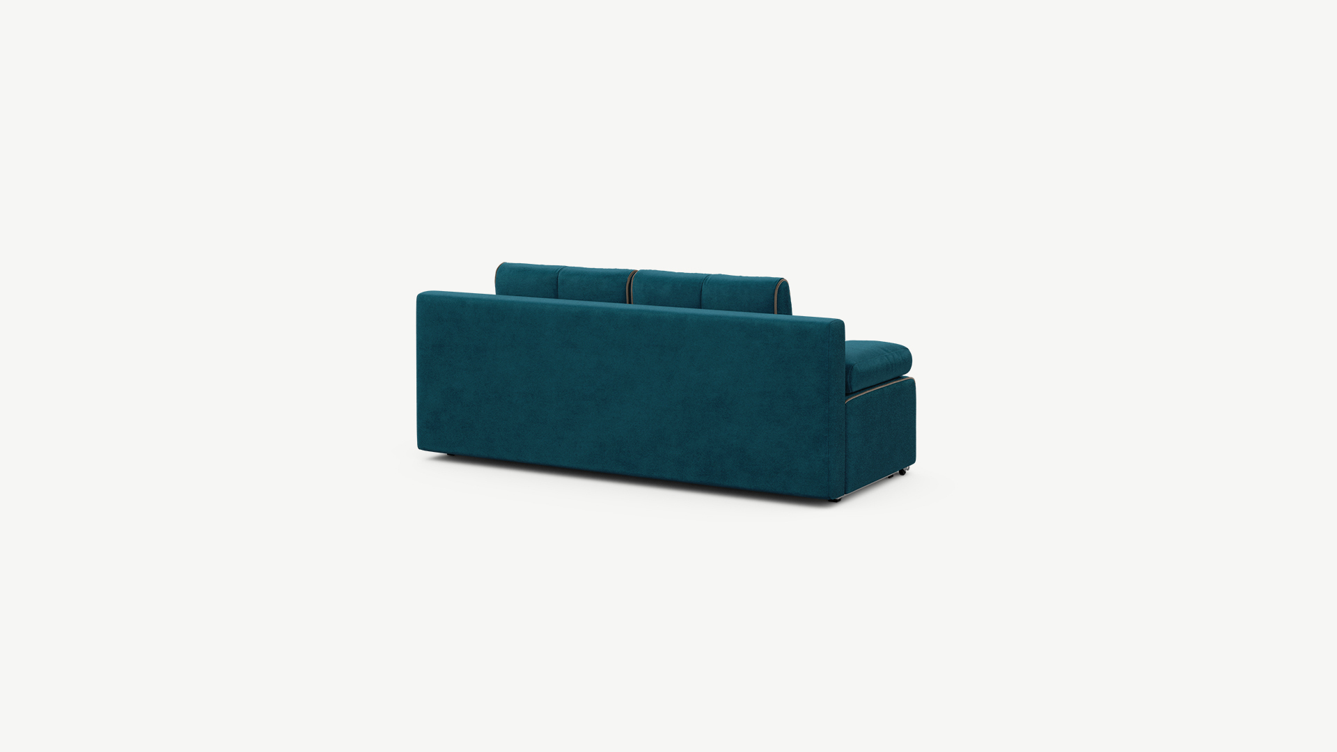 Спинка, выполненная в обивочной ткани, позволяет ставить диван в центре комнаты и зонировать пространство.