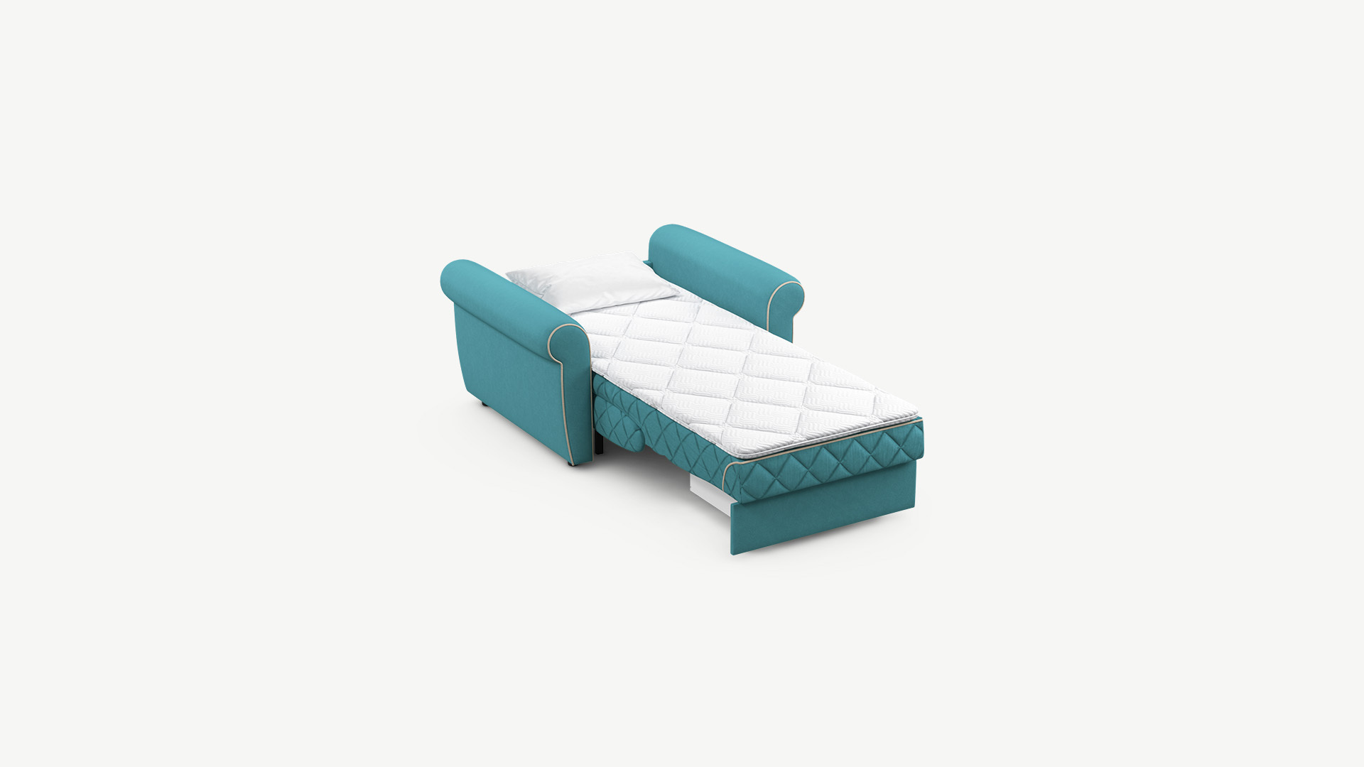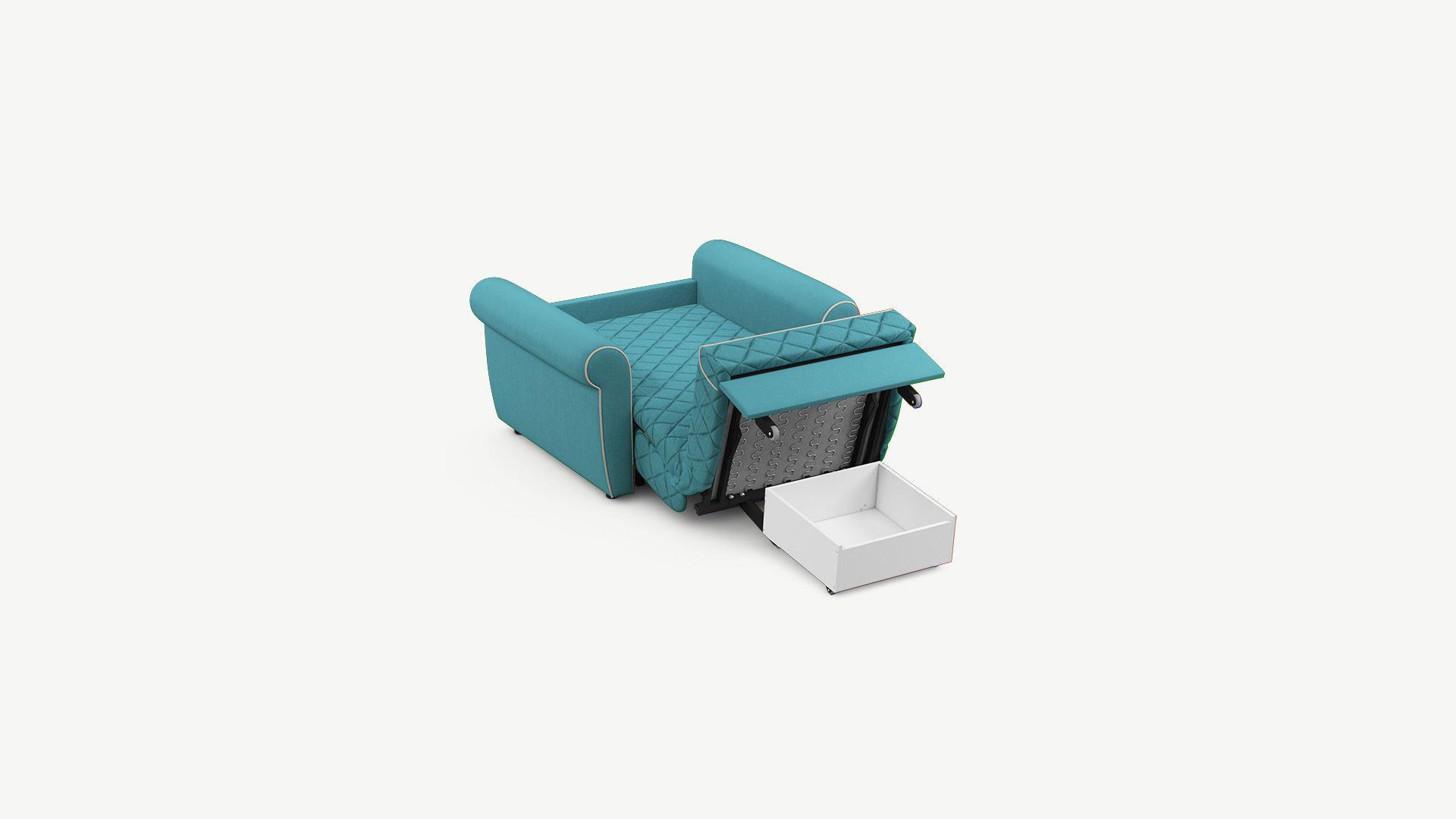 Великолепное кресло, цвет бирюзовый очень приятный, освежающий интерьер! Раскладывающийся механизм удобный, лёгкий, комфортно использовать для сна. Настоятельно рекомендую эту модель!