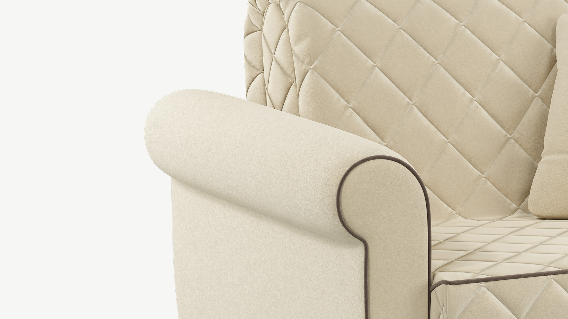 Дизайн MOON FAMILY 123 с винтажной формой подлокотников настраивает на звучание классики. Стежка в ромб добавляет образу кресла-кровати динамики, делая его более уютным и современным.