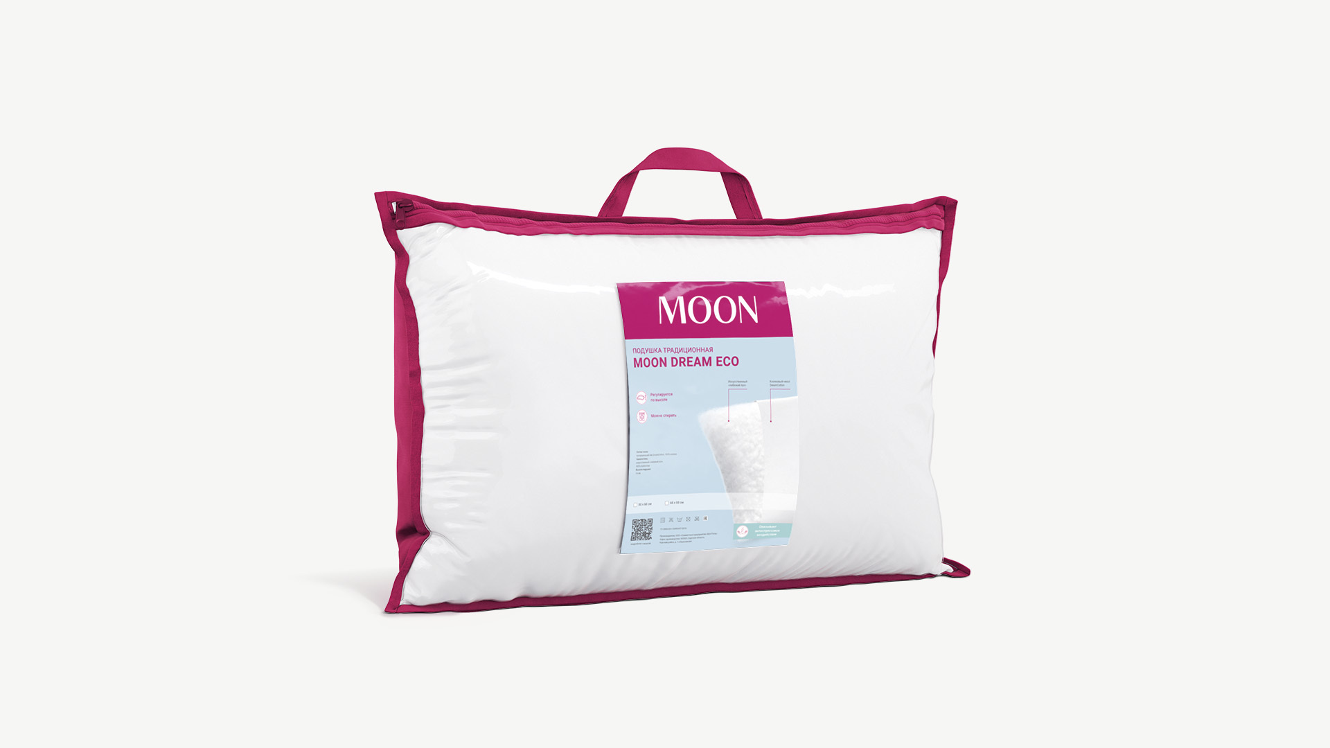 MOON DREAM ECO, представленной в двух размерах 68x50x16 см и 68x68x16 см, подходят стандартные наволочки.
