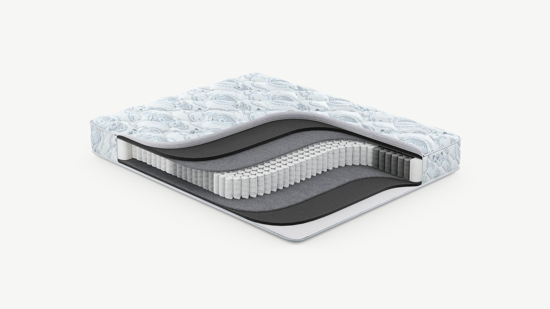 Повышает жесткость и плотность спального места, а также обеспечивает оптимальный воздухообмен благодаря объемной структуре материала. Улучшает эксплуатационные показатели матраса, не давая пружинному блоку механически воздействовать на комфортные слои.