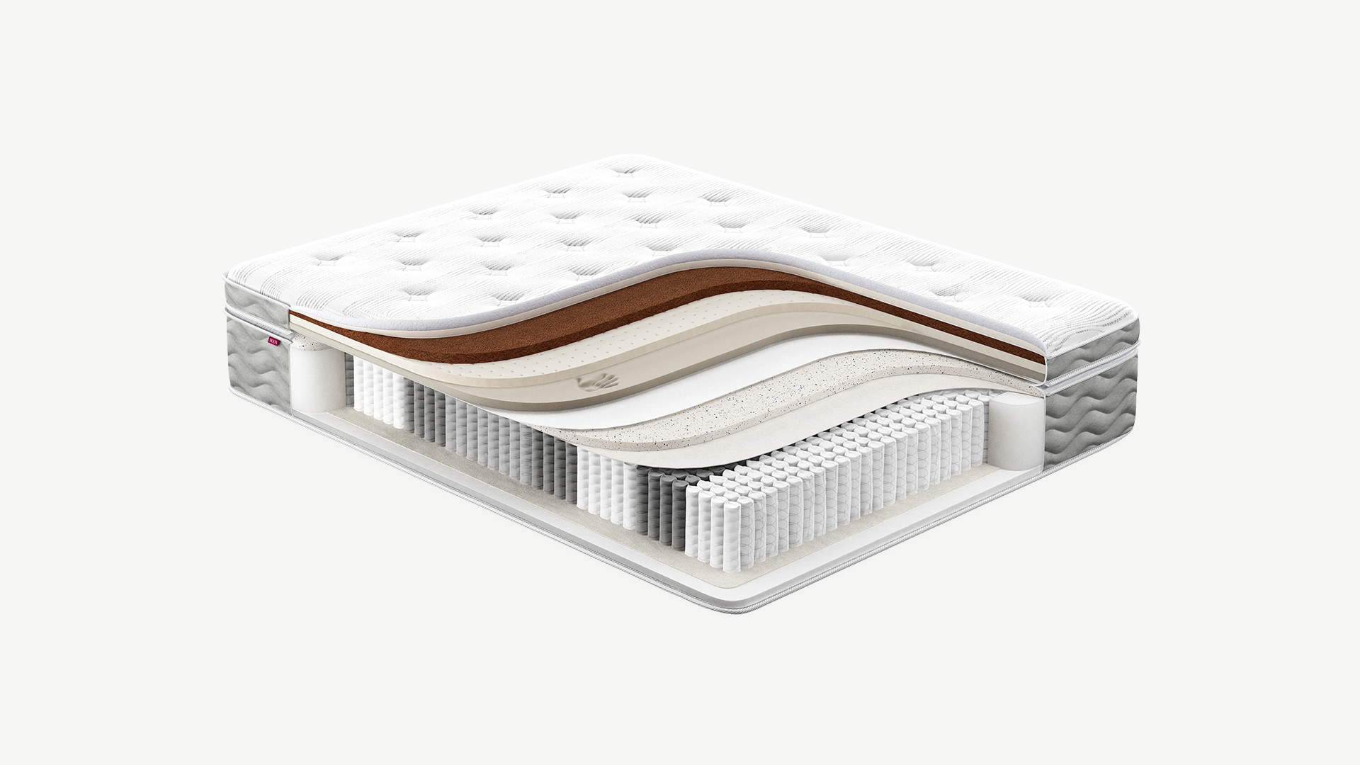 Надежно изолирует комфортные слои от соприкосновения с пружинным блоком и защищает материалы наполнения матраса от износа.