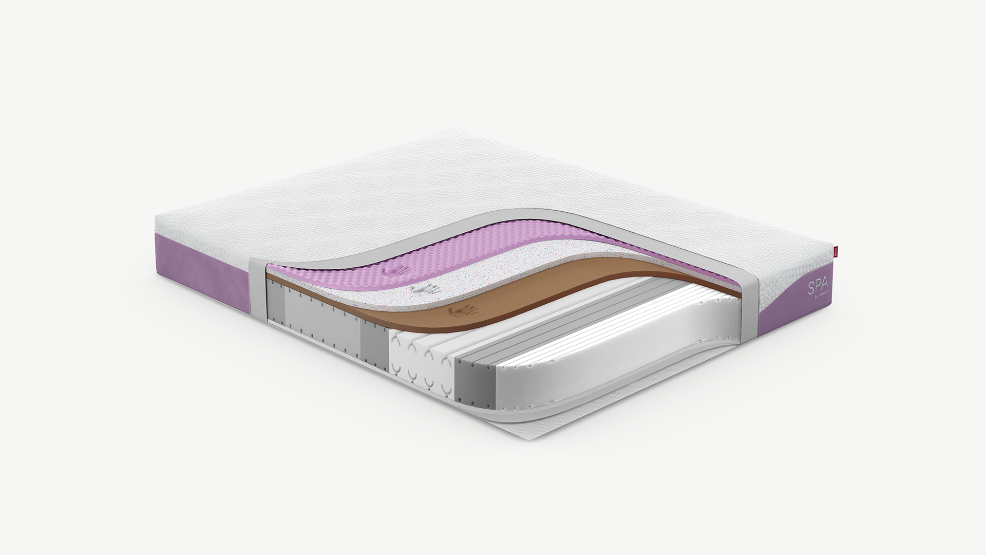 Работая над коллекцией MOON SPA, мы отдали предпочтение комплексному подходу. Это сочетание морских минералов и янтарной пены, инновационных пен с эффектом памяти, а также использование специального чехла с массажным эффектом. Таким образом, Вы получаете матрас, позволяющий ощутить расслабление и покой, аналогичные эффекту спа-процедур.