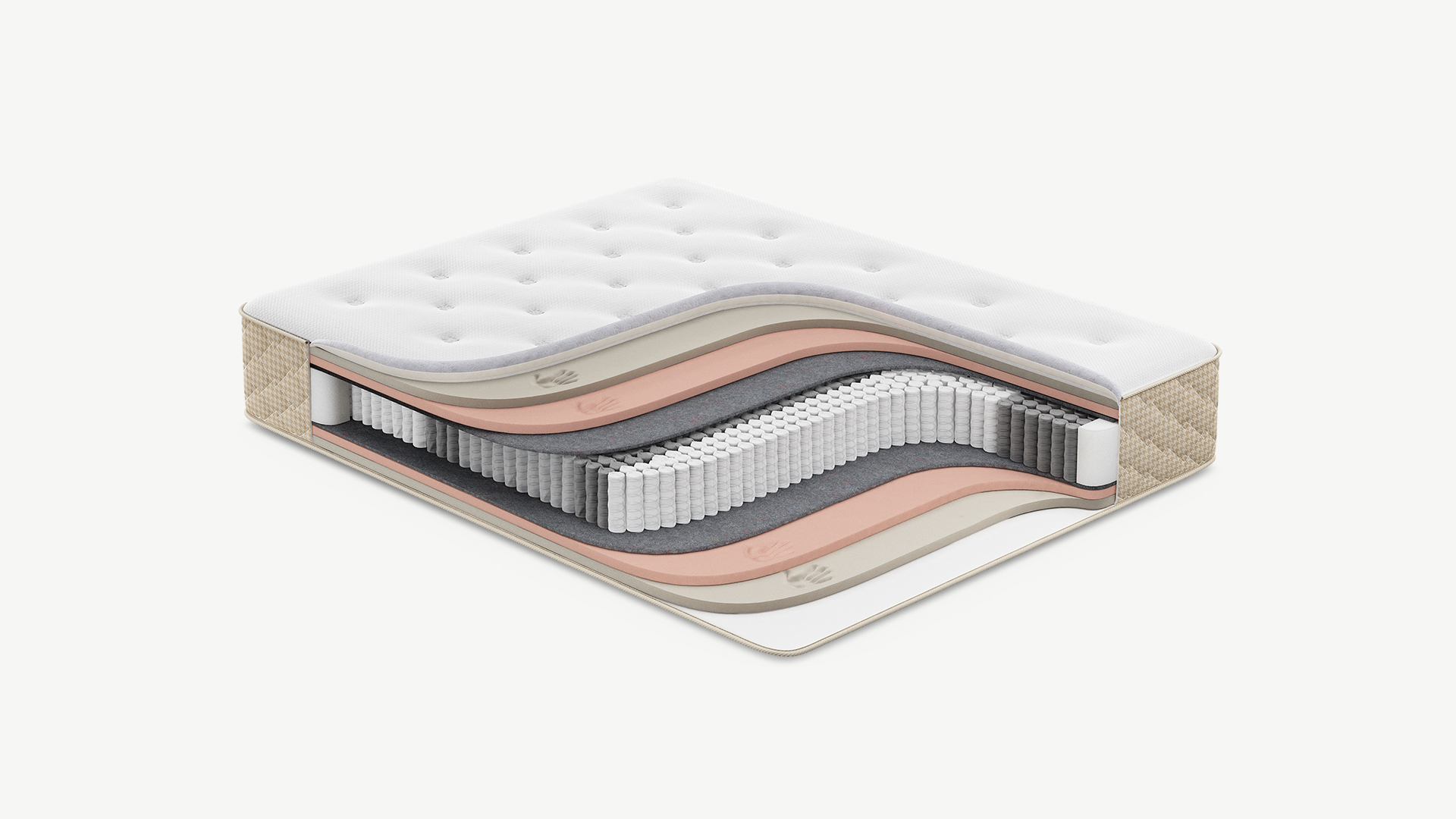 Обеспечивает естественный воздухообмен и сохраняет форму матраса. Выполнен из плотного трикотажа, простеганного на слое упругой пены и искусственного объемного волокна. Точечная стежка поддерживает превосходный уровень комфорта и не позволяет наполнителю смещаться в процессе эксплуатации.