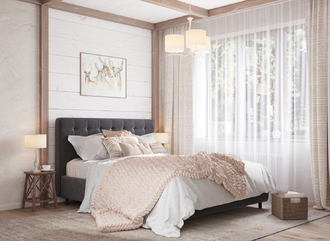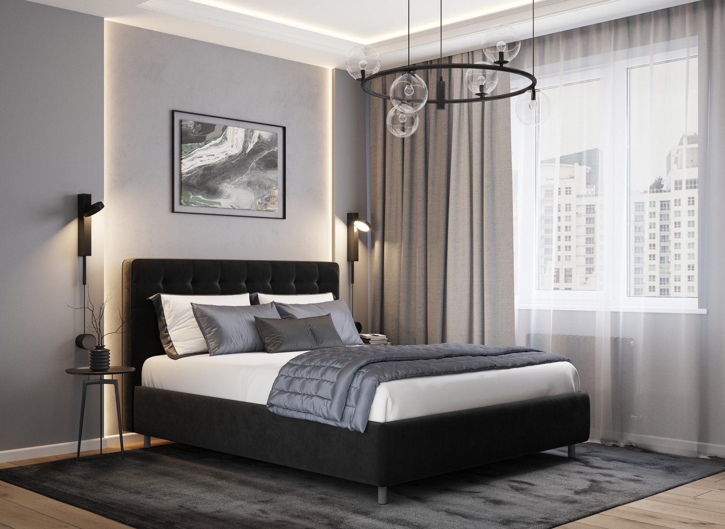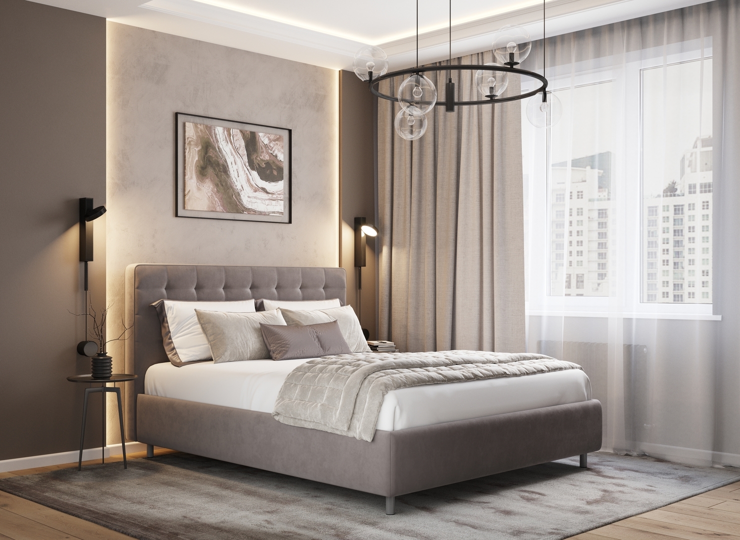 Оформите образ кровати, выбирая обивочный материал, который подчеркнет звучание Вашей спальни и отразит Ваш вкус. Обратите внимание на однотонный гладкий велюр, который усиливает объемную фактуру стежки.