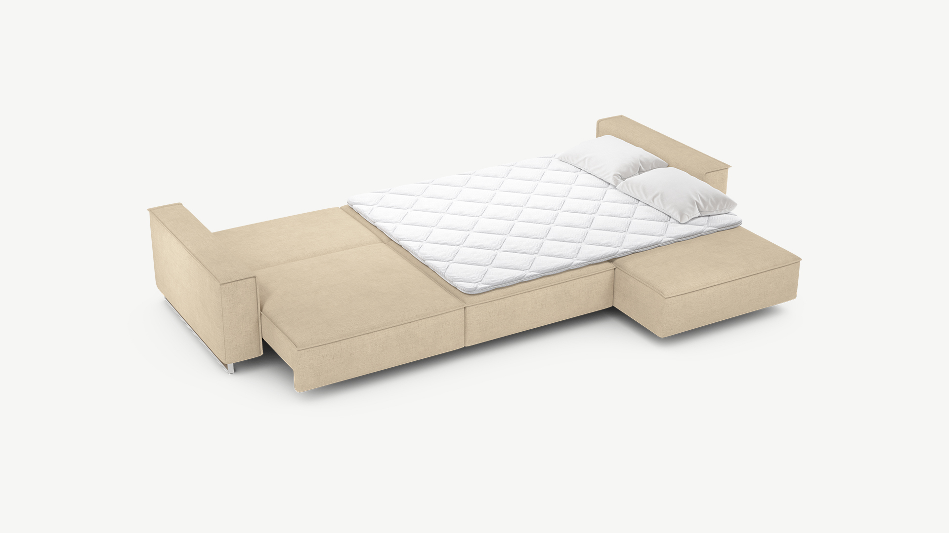 Секция канапе обеспечивает не только дополнительное пространство для отдыха, но и предоставляет возможность располагаться с максимальным комфортом, удобно вытянув ноги.