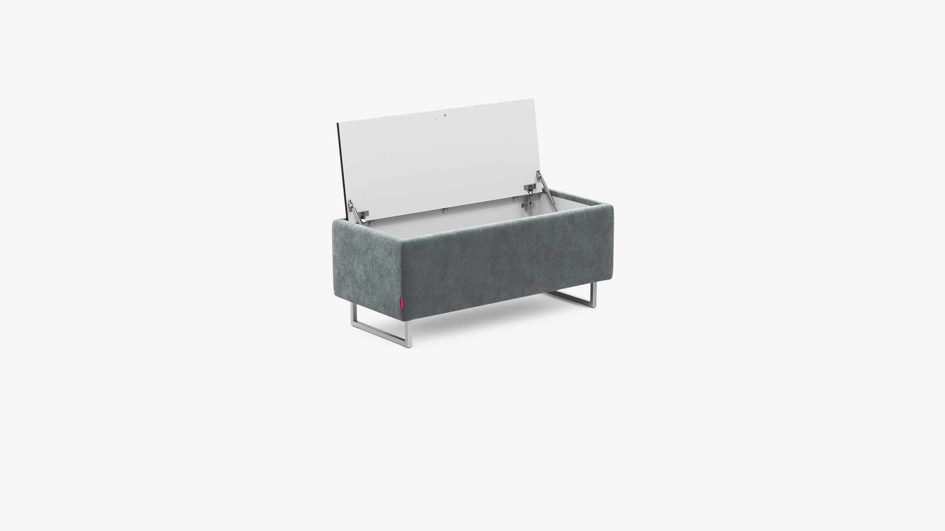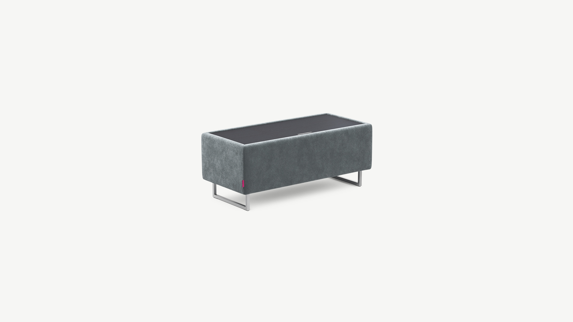 MOON 117 снабжена встроенной столешницей, а также вместительной емкостью для хранения. Легкий доступ к внутренней части банкетки обеспечивает скрытая в столешнице ультратонкая ручка. Оснащенная газовыми амортизаторами, крышка-столешница функционирует плавно и бесшумно. Надежно фиксируясь в открытом положении, она обеспечивает комфортный доступ к содержимому.