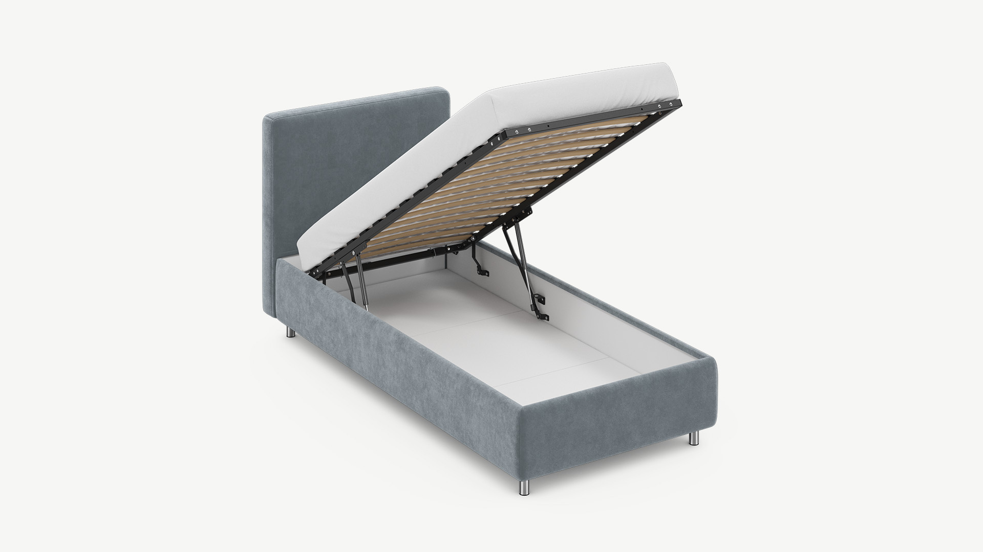 - Скрытая под основанием вместительная емкость без внутренних перегородок позволяет использовать всю площадь подкроватного пространства для хранения вещей.