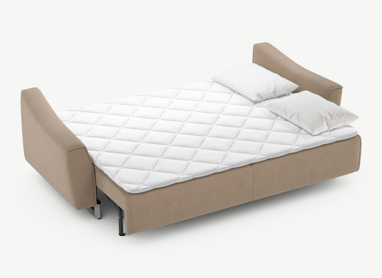 Механизм трансформации «Пантограф» подходит для ежедневного использования. Позволяет легко раскладывать и складывать диван, обеспечивая минимальный контакт дополнительных опор с напольным покрытием. Диван стоит на трапециевидных опорах, в то время как дополнительные остаются скрытыми, появляясь плавно и бесшумно в единственно нужный момент — при трансформации дивана в кровать.