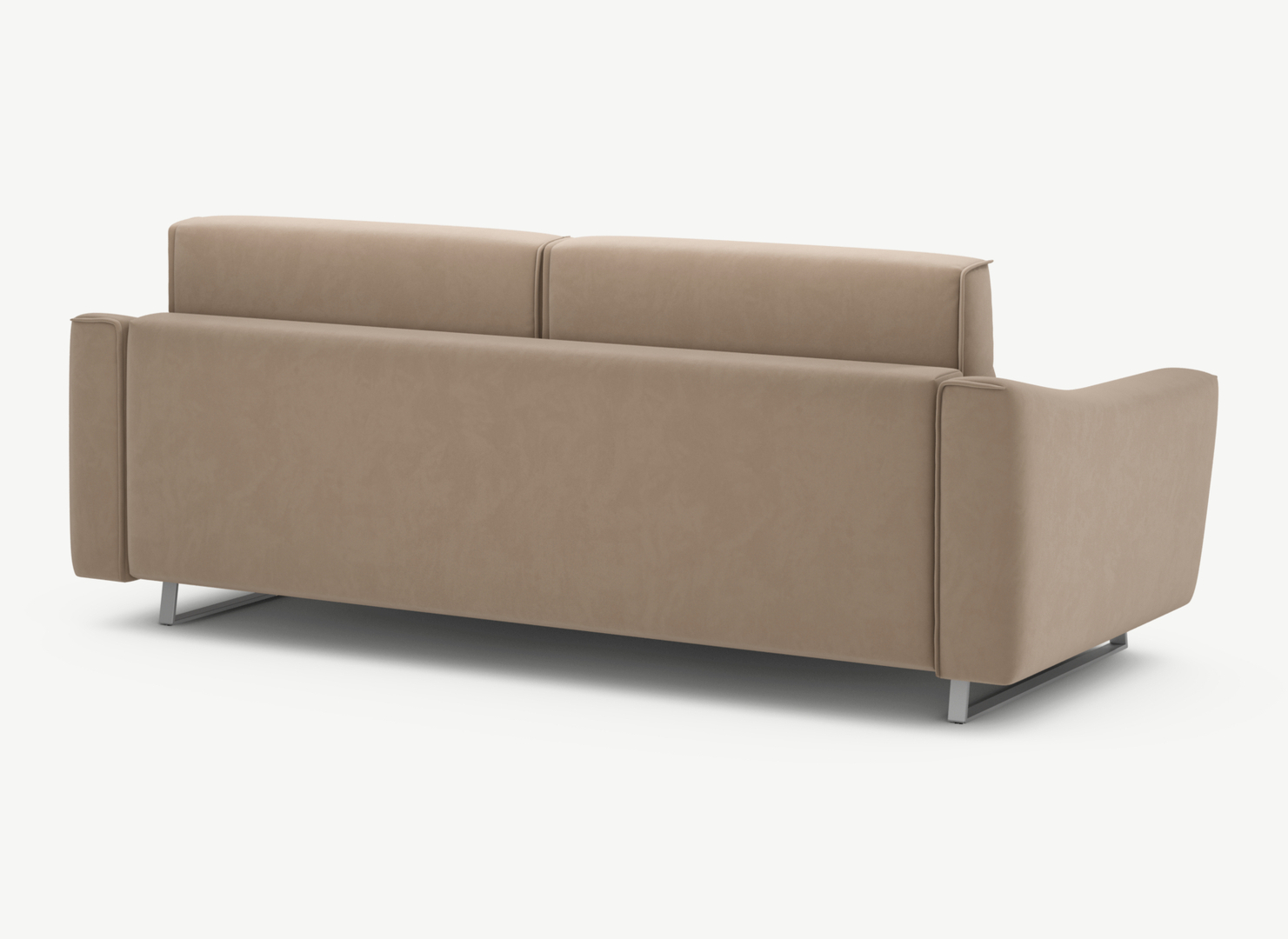 Необычная геометрия MOON 172 создает визуальный эффект расширения пространства и становится ярким акцентом. Подлокотники каскадной формы словно раскрывают свои объятия и призывают удобно разместиться на посадочном месте. Кант добавляет графической строгости очертаниям MOON 172 и на контрасте фактур подчеркивает гладкость обивки. Высокие трапециевидные опоры визуально облегчают силуэт дивана, наполняя его Дизайн футуристическим шармом.