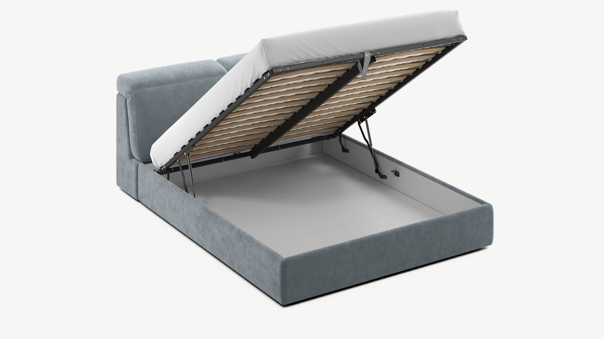 - Скрытая под основанием вместительная емкость без внутренних перегородок позволяет использовать всю площадь подкроватного пространства для хранения вещей.