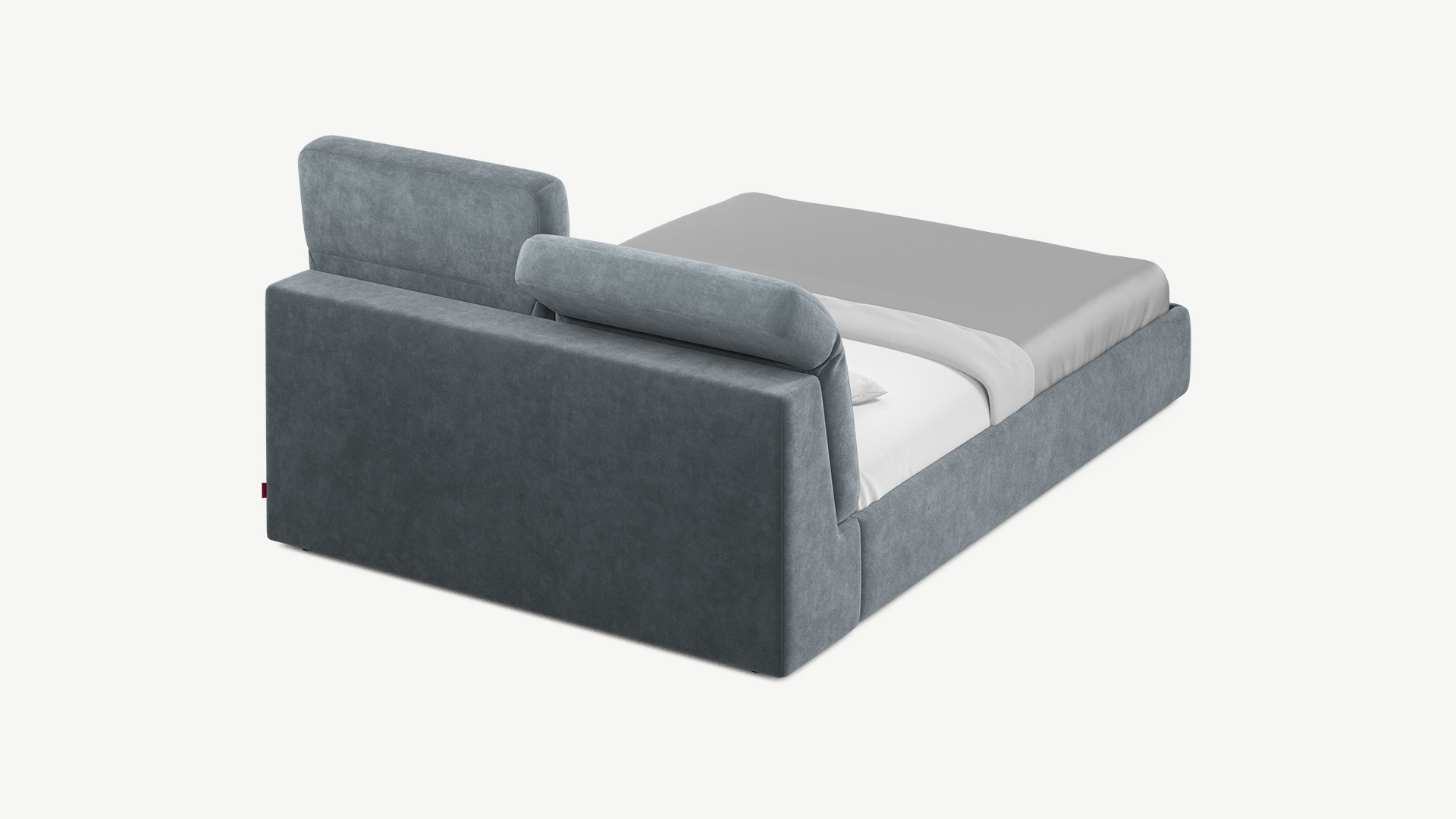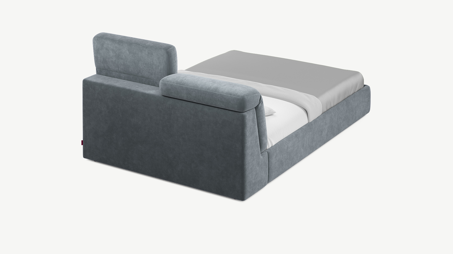 Изголовье подчеркивает эстетику MOON 1107, а также дарит дополнительный комфорт и уют спальному месту. Обратная сторона изголовья выполнена в мебельной ткани и позволяет ставить кровать в центре комнаты для зонирования пространства.