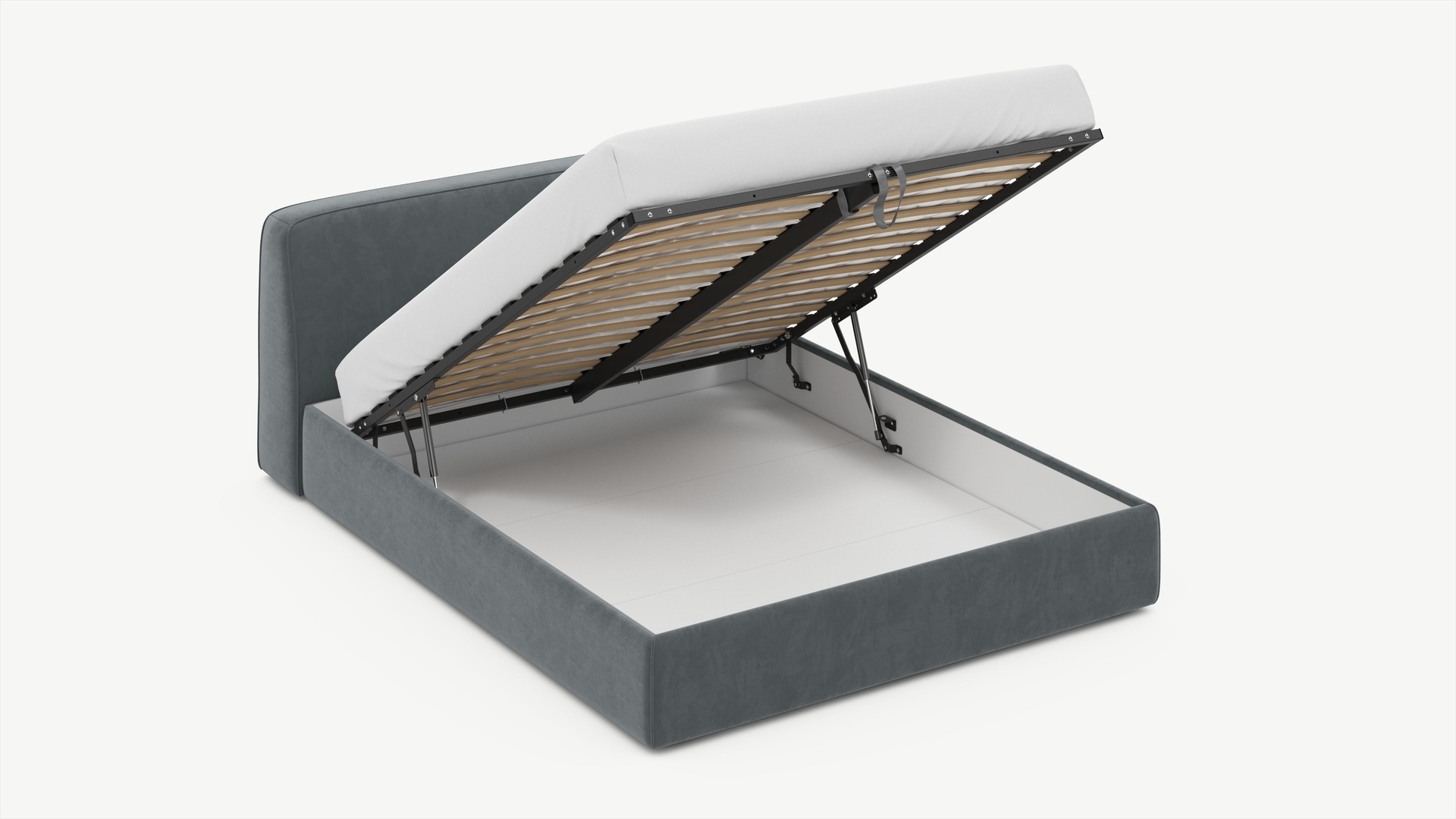 - Скрытая под основанием вместительная емкость без внутренних перегородок позволяет использовать всю площадь подкроватного пространства для хранения вещей.