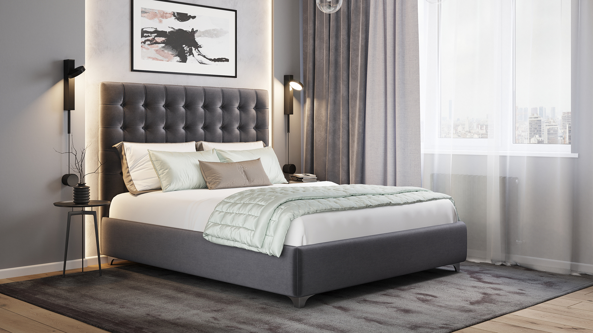 Творческий подход к выбору обивочного материала меняет образ дизайна. Например, однотонный гладкий велюр придает кровати эстетическую утонченность, в то время как фактурное тиснение на ткани усиливает игру перехода оттенков и выглядит особенно оригинально. Оформите образ кровати, выбирая обивку, которая подчеркнет звучание Вашей спальни и отразит Ваш вкус.