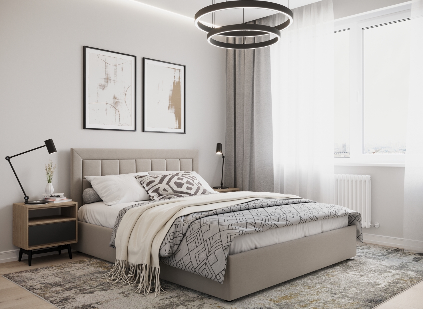Создать гармоничный интерьер, а также целостный образ спальни помогут дополнительные аксессуары - например, тумбы, банкетки, подушки.