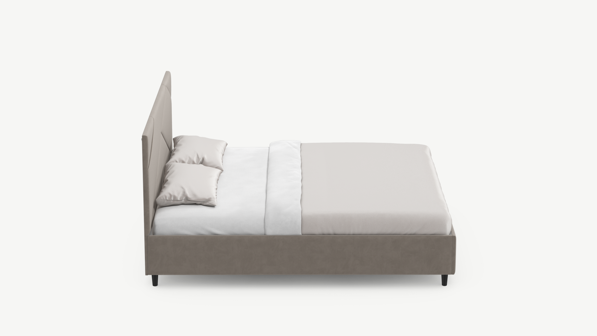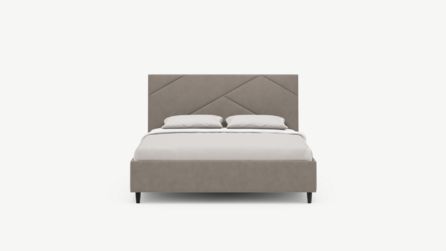 MOON FAMILY 1257 привлекает внимание оригинальным исполнением: широкие полосы ткани эффектно пересекают периметр изголовья, создавая на нем графический орнамент. Лаконичные формы объемных царг создают единый гармоничный образ и фокусируют внимание на центральном текстурном элементе кровати.