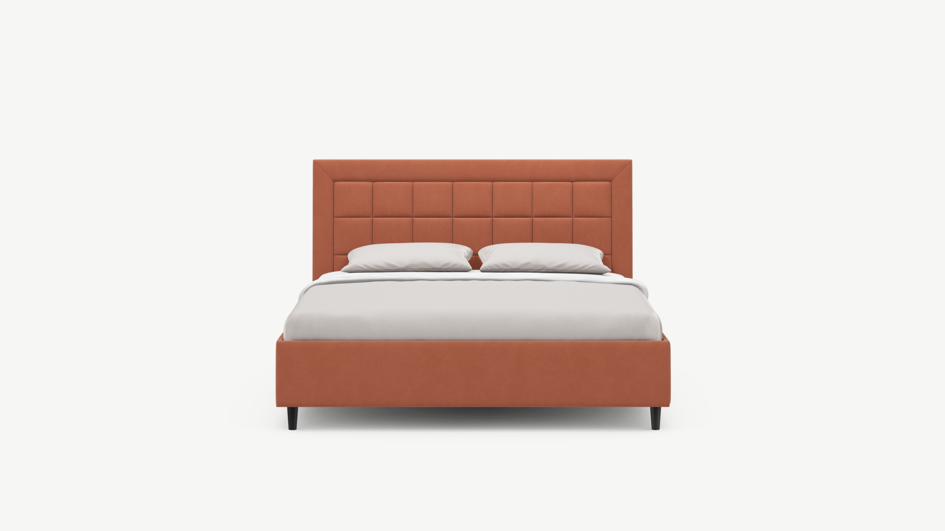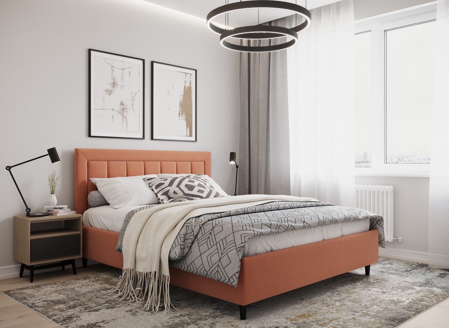 Стежка помещена в центр изголовья и обрамлена, словно картина. Объемные царги завершают цельную фигуру кровати и становятся гармоничным дополнением ее образа.