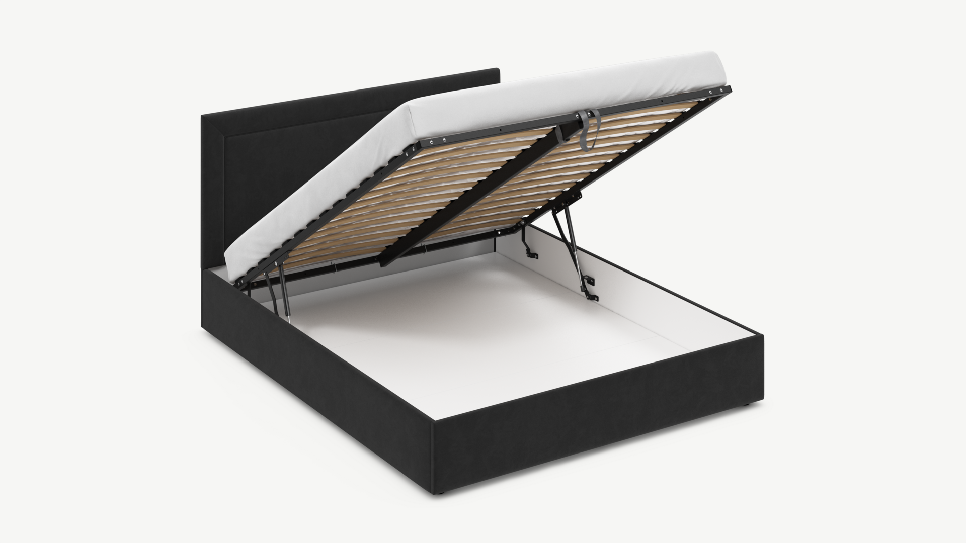 - Скрытая под основанием вместительная емкость без внутренних перегородок позволяет использовать всю площадь подкроватного пространства для хранения вещей.