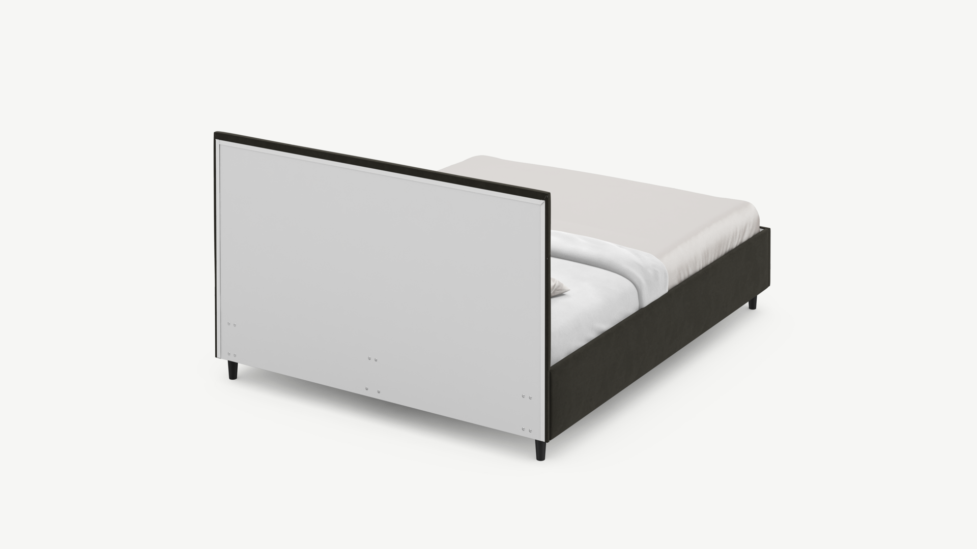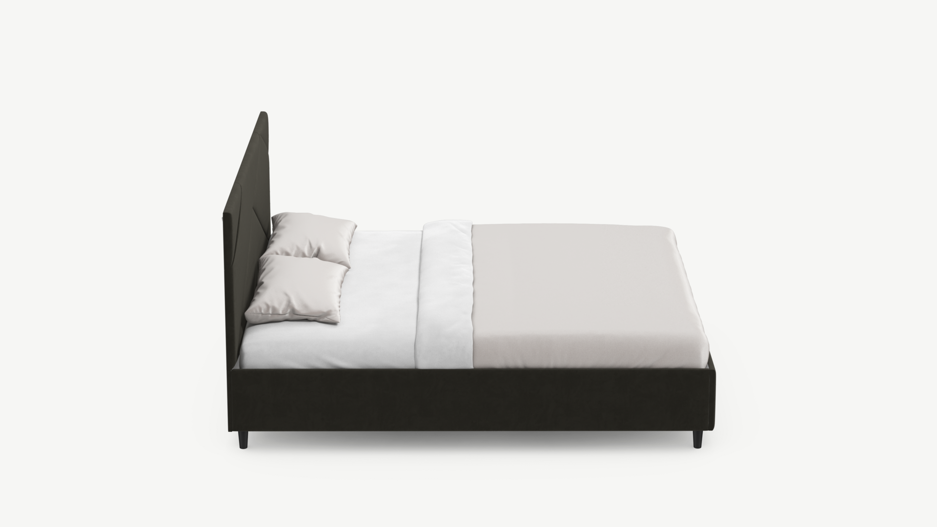 MOON FAMILY 1257 привлекает внимание оригинальным исполнением: широкие полосы ткани эффектно пересекают периметр изголовья, создавая на нем графический орнамент. Лаконичные формы объемных царг создают единый гармоничный образ и фокусируют внимание на центральном текстурном элементе кровати.