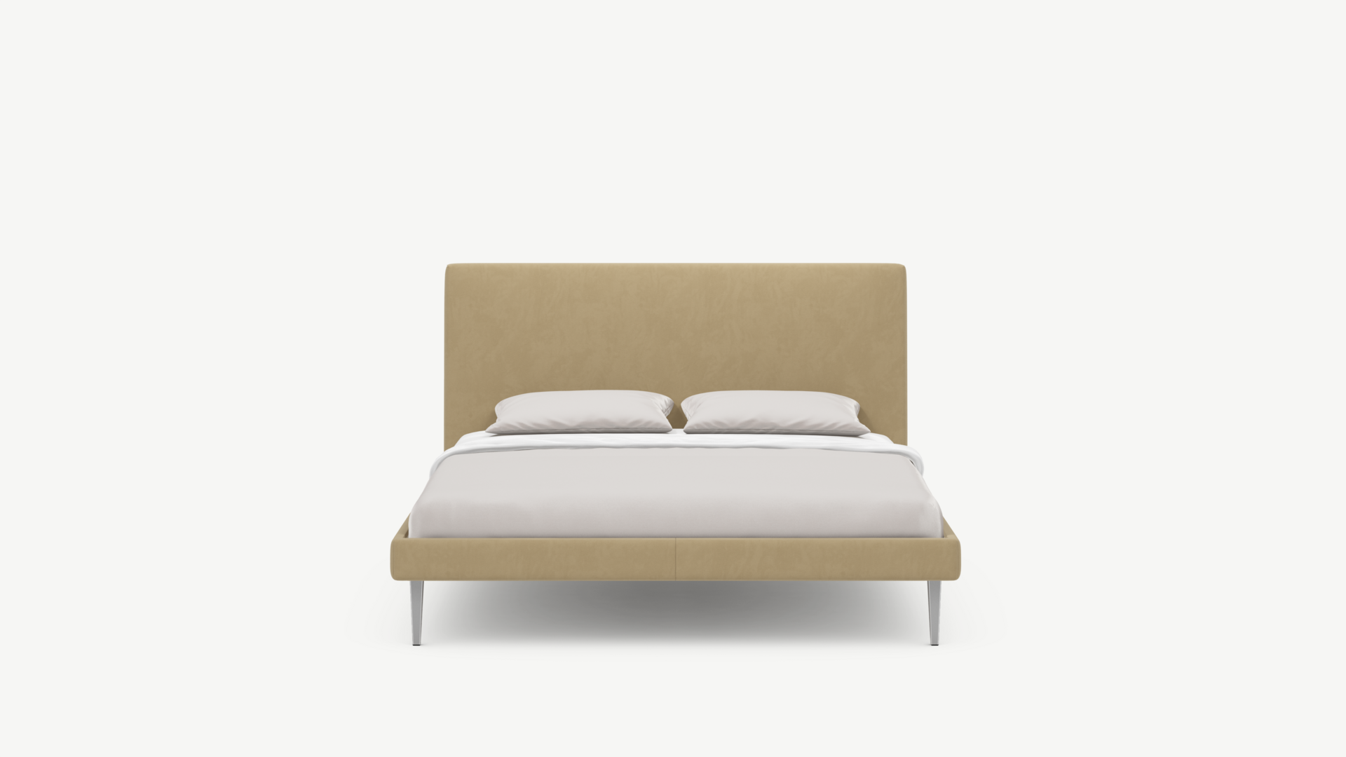 Кровать MOON FAMILY 1256 демонстрирует безупречный баланс изящных пропорций. Лаконичное изголовье, узкие царги и высокие опоры создают эффектный образ, привносящий в пространство спальни стильный и яркий акцент.