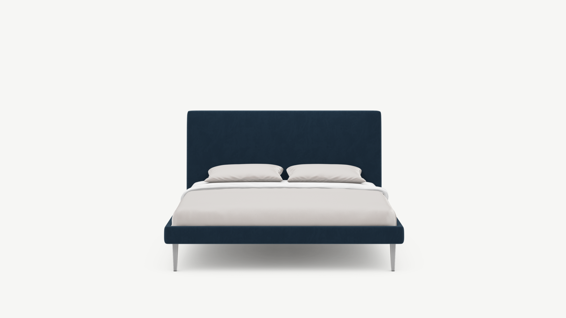 Кровать MOON FAMILY 1256 демонстрирует безупречный баланс изящных пропорций. Лаконичное изголовье, узкие царги и высокие опоры создают эффектный образ, привносящий в пространство спальни стильный и яркий акцент.