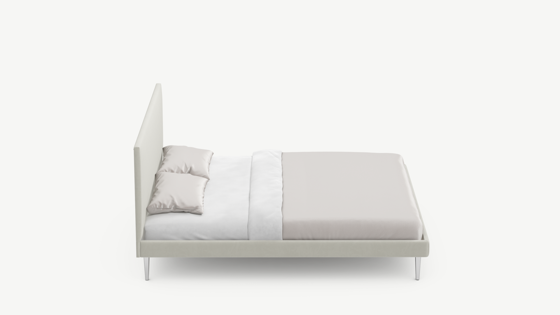 Кровать MOON FAMILY 1256 демонстрирует безупречный баланс изящных пропорций. Лаконичное изголовье, узкие царги и высокие опоры создают эффектный образ, привносящий в пространство спальни стильный и яркий акцент.