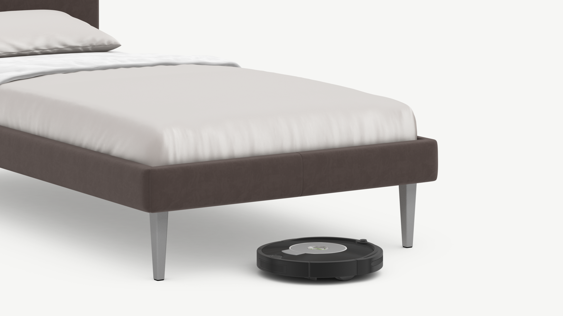 Высокие металлические опоры клиновидной формы эффектно подчеркивают Дизайн MOON FAMILY 1256, а также создают достаточный просвет для движения робота-пылесоса, что помогает поддерживать чистоту и порядок в доме.
