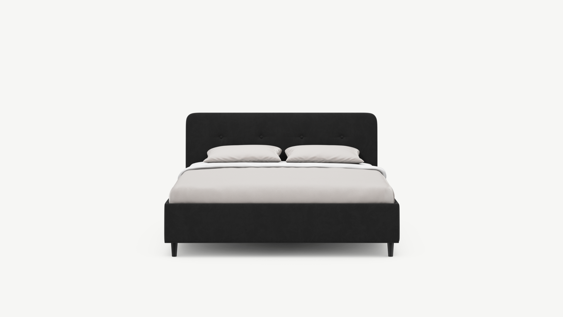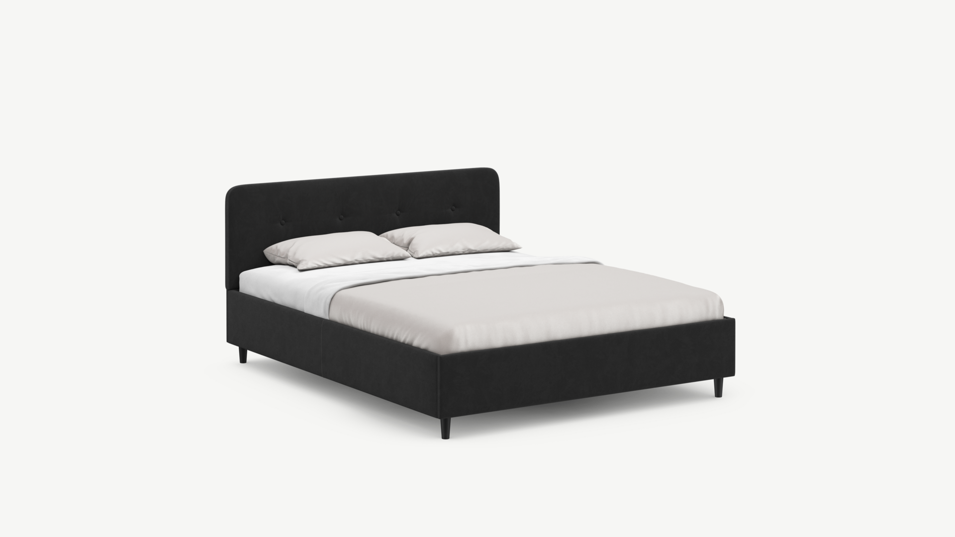 КроватьMOON FAMILY 1253 ярко демонстрирует очарование объемных форм, подчеркнутых изголовьем с искусной утяжкой на пуговицах.