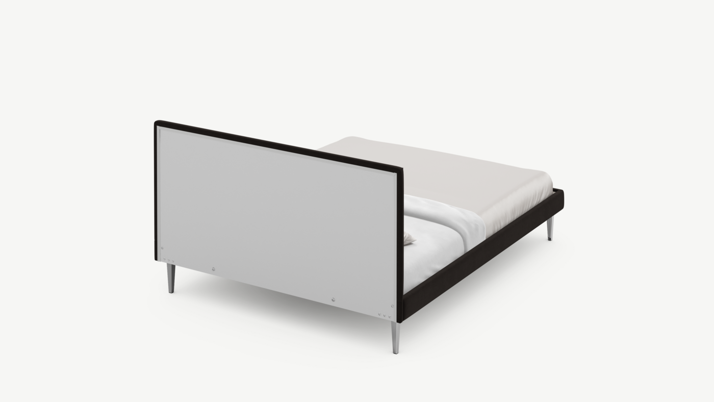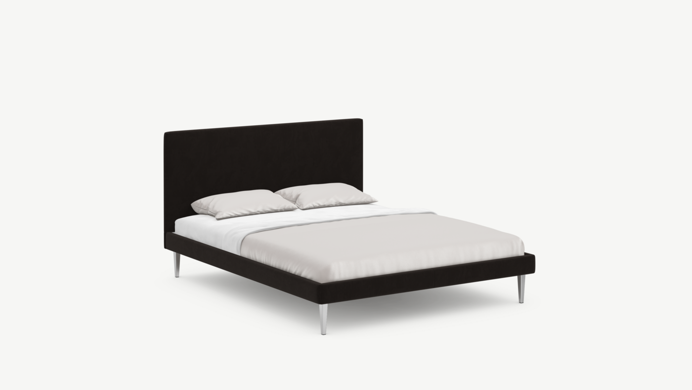 Кровать MOON FAMILY 1256 демонстрирует безупречный баланс изящных пропорций. Лаконичное изголовье, узкие царги и высокие опоры создают эффектный образ, привносящий в пространство спальни стильный и яркий акцент.
